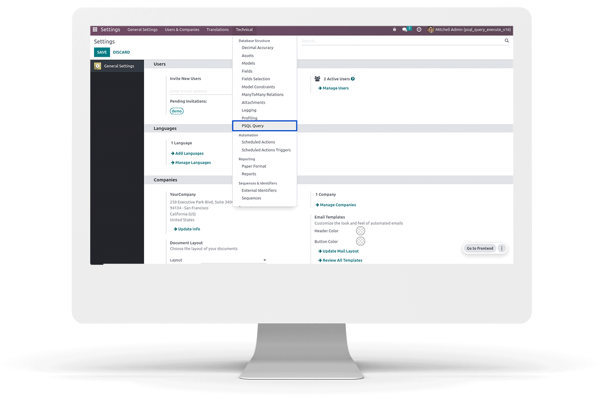 This module helps you execute a query directly in the Odoo interface and output your query in Excel.