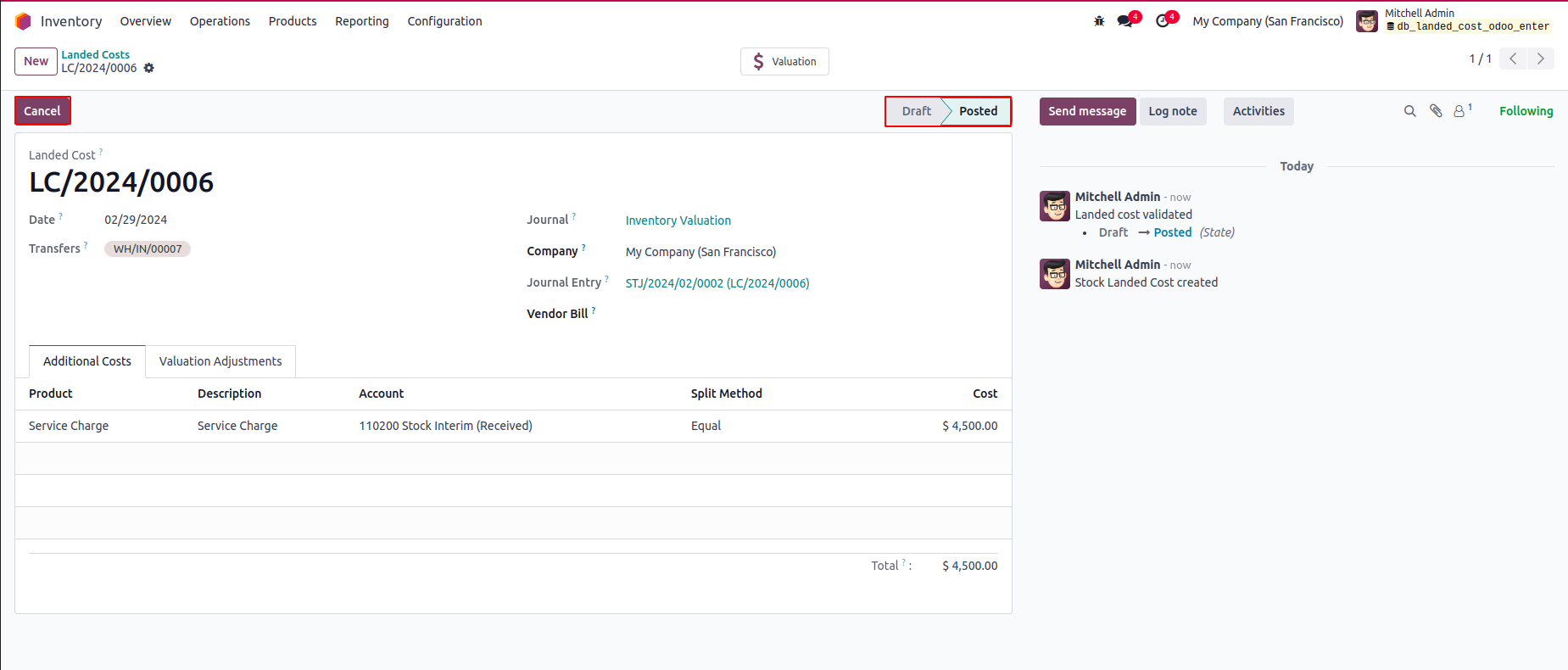 When You Cancel The Landed Costs Then The Landed Cost Is Reset And The State Is Changed Back To "DRAFT".