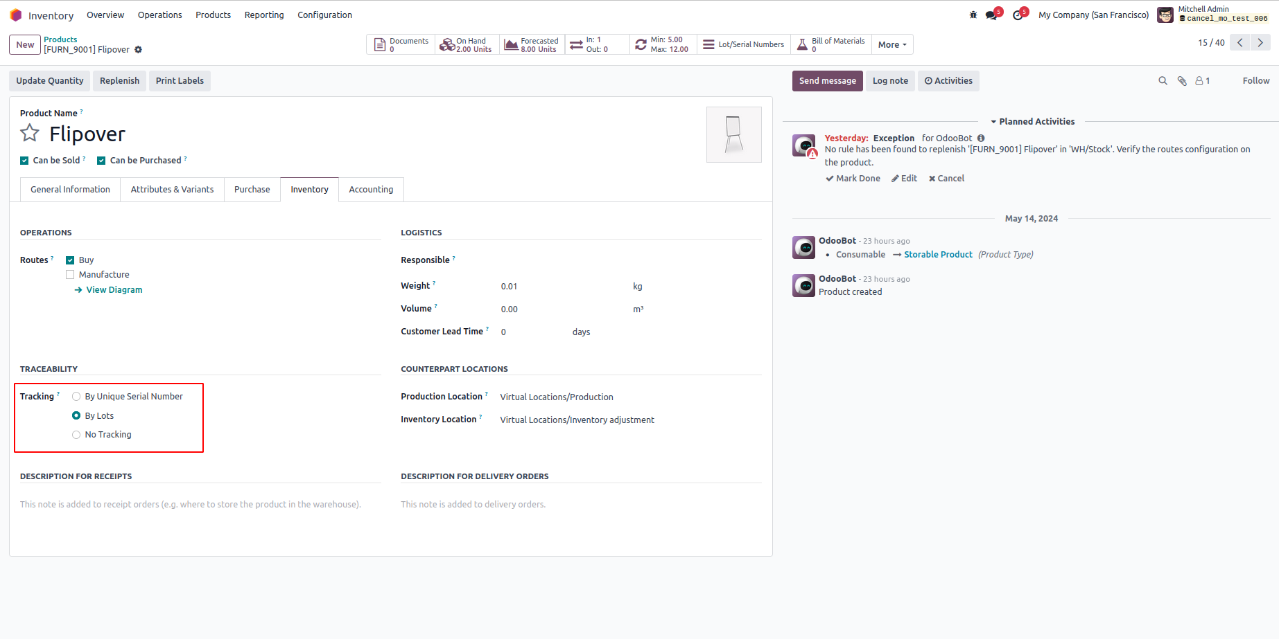 Create a new picking for the corresponding product with the operation type set to 'Receipt'.