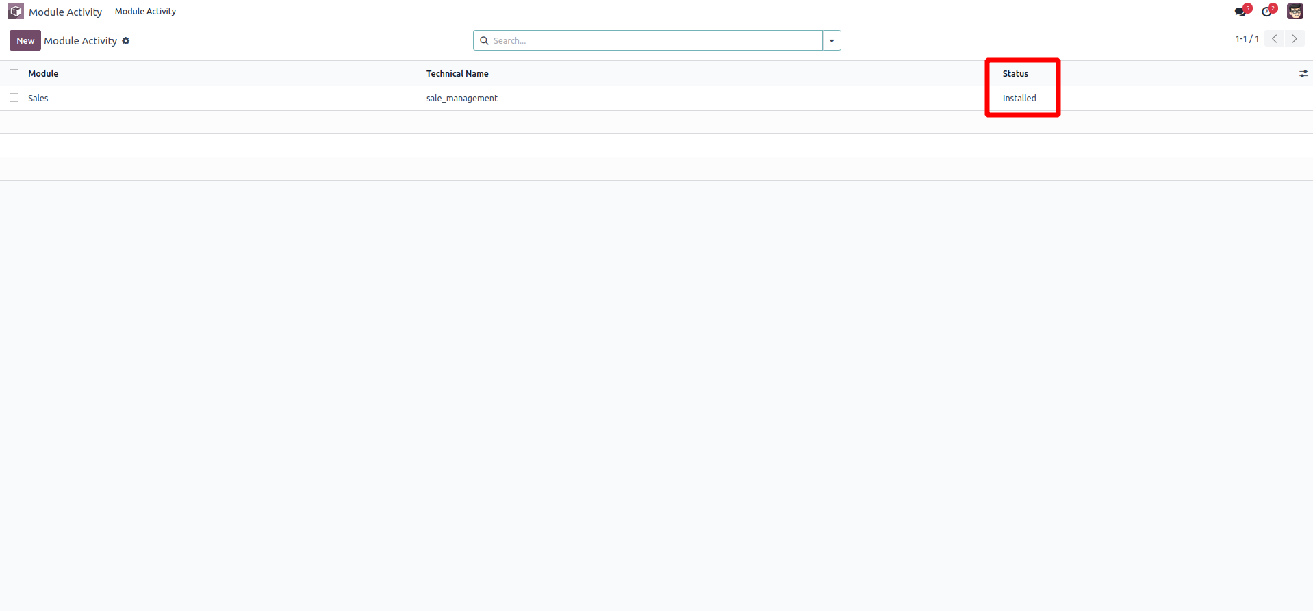 A new record is created in the form view to capture the installation, upgrade, and uninstall histories.