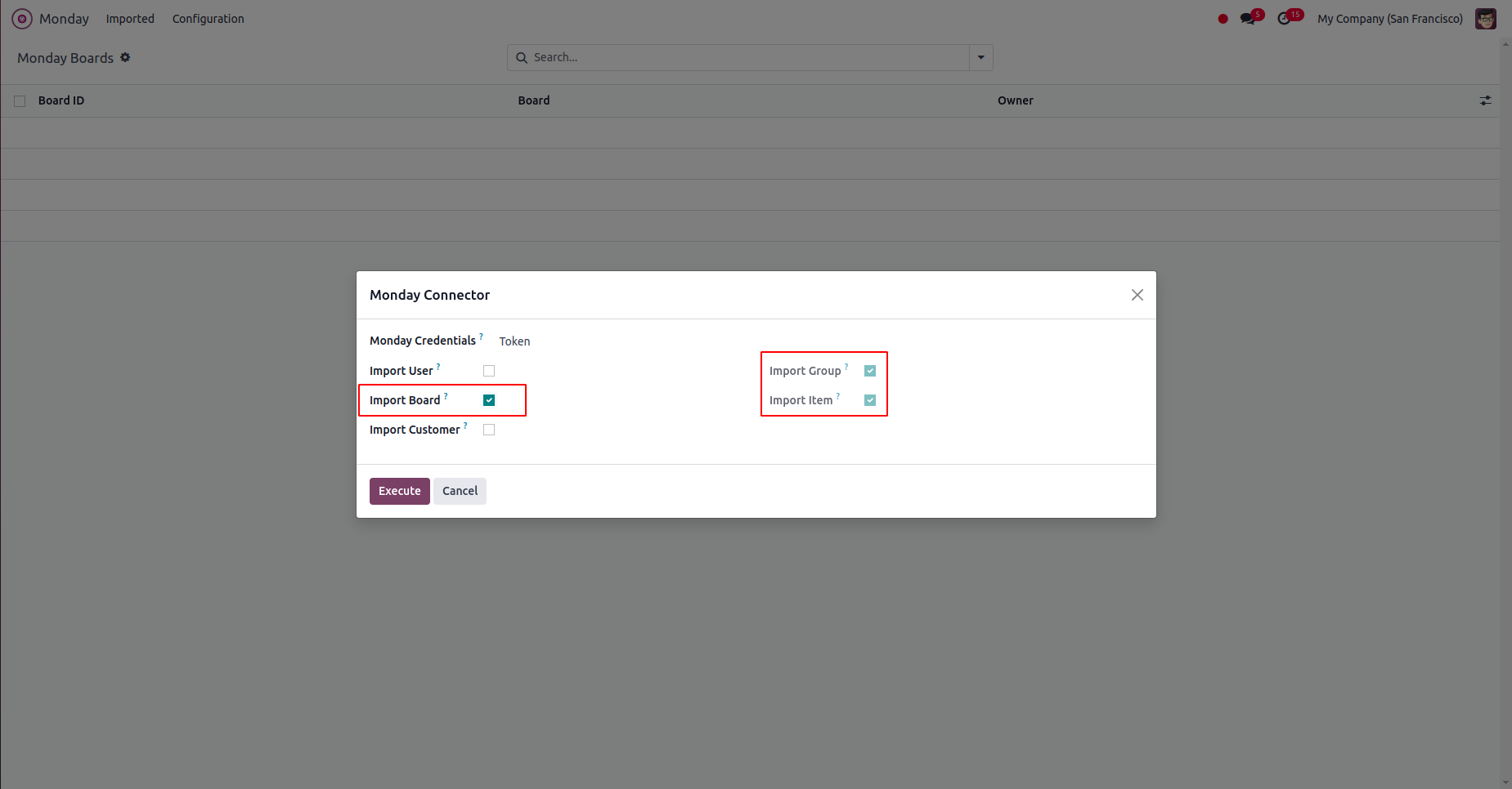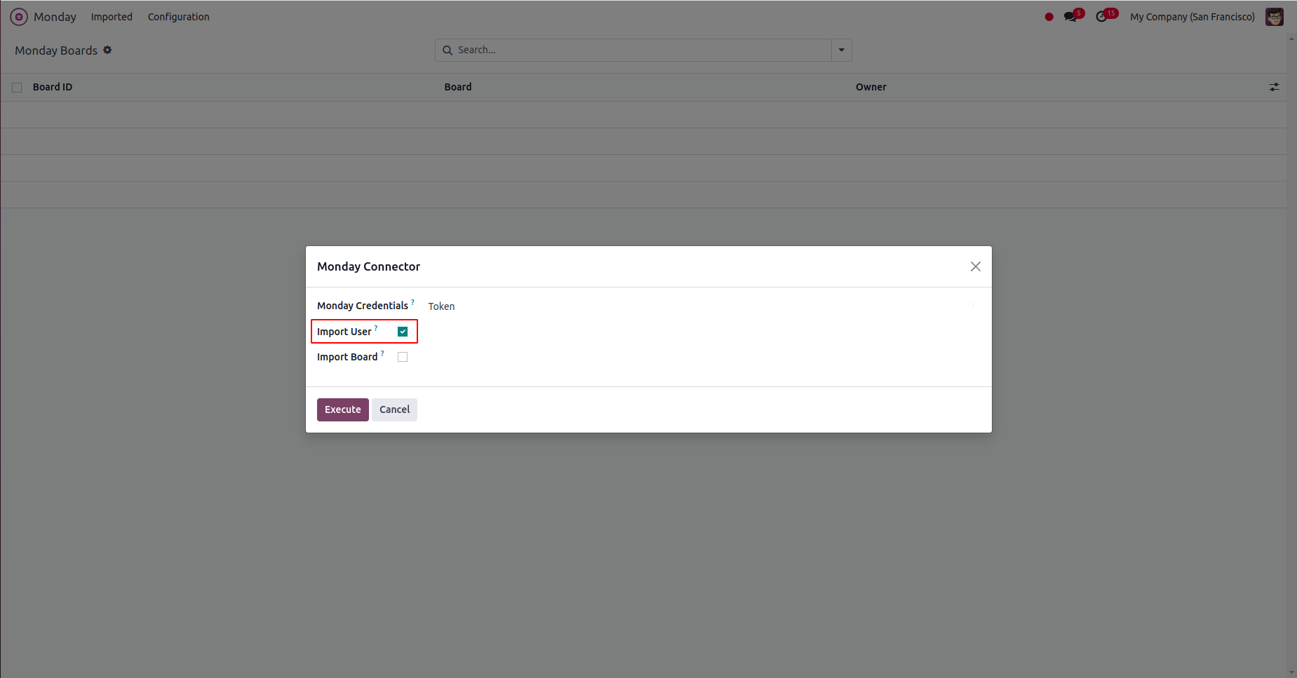 Choose Monday Credential and Tick Import User Checkbox.