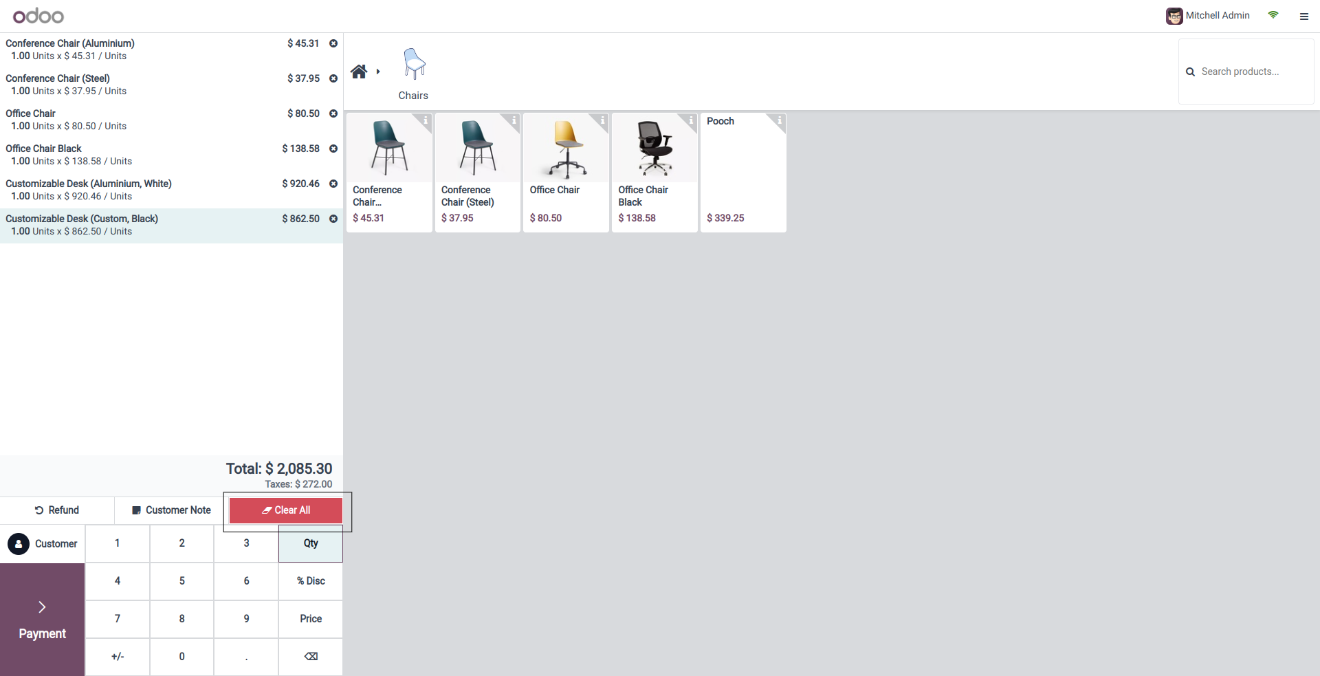 Remove each lines from selected order by simply clicking X button or clear all order with a single click.