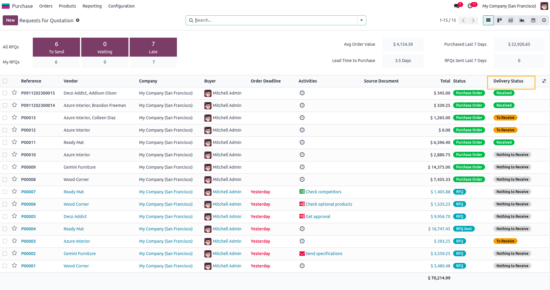 Nothing to Receive, To Receive, Partially Received, Received and Processing.