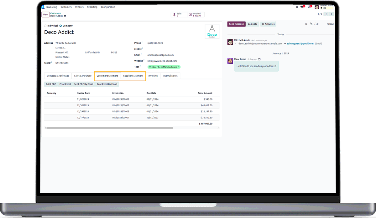 Customer and Supplier Statement in Contacts.