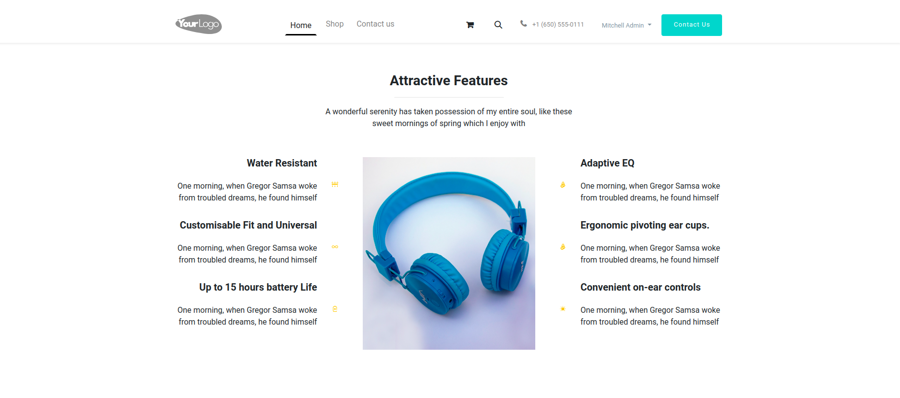 Provides Structural snippets like Features, Subscribe, Choose , Cards, Banner and Dynamic content snippets configured from the backend like Asked Questions, Best Deals, Best Products, Testimonial