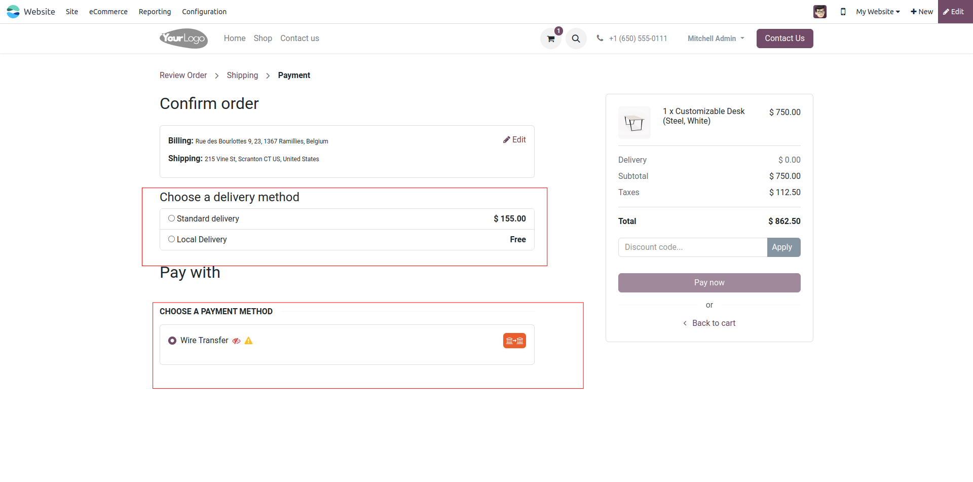 Web Pay Shipping Methods