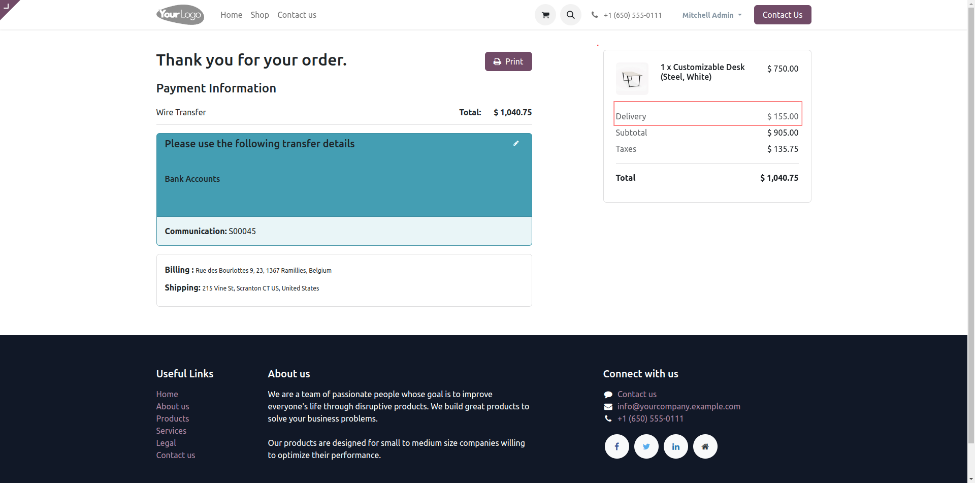 You can see the shipping charge added of the selected shipping method