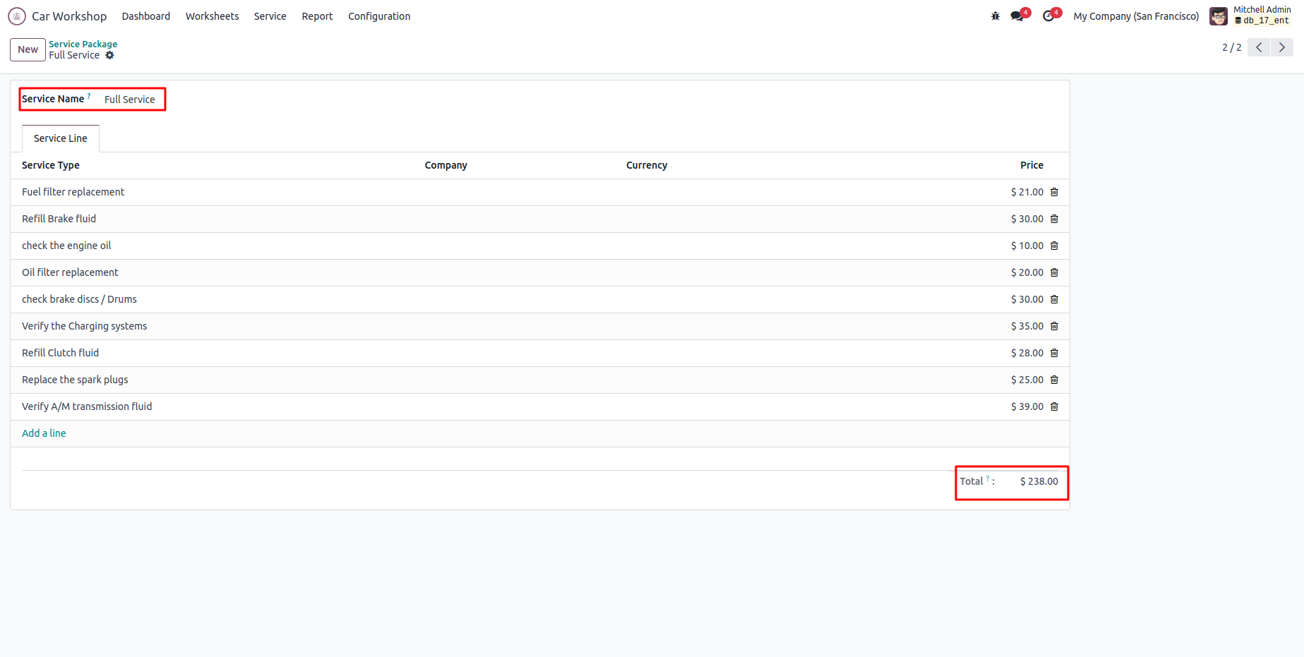 In the service package menu, add the package name and the service type provided in that package. then the total expense of the service package will be automatically calculated.