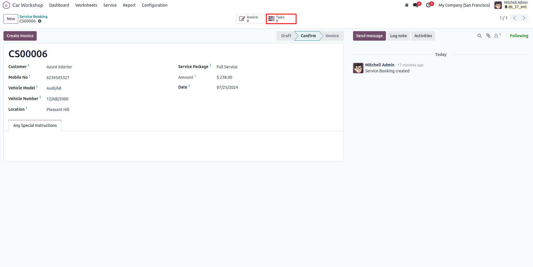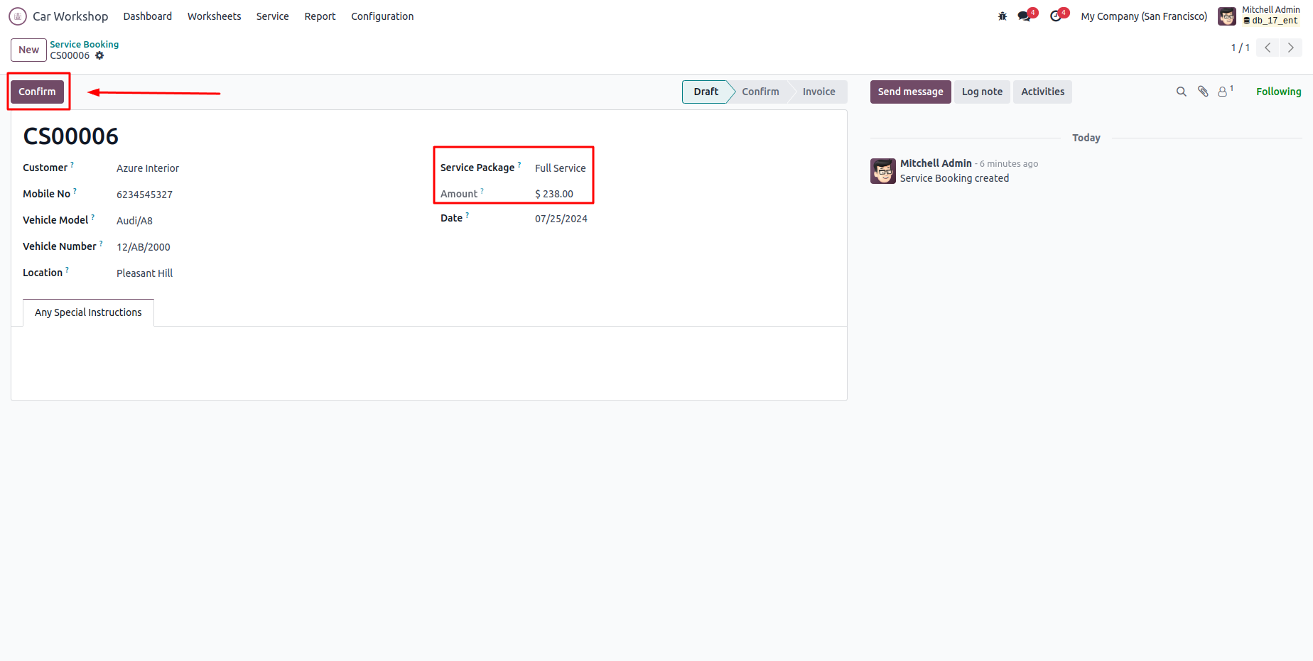 The service worksheet will automatically generate after confirmation.
