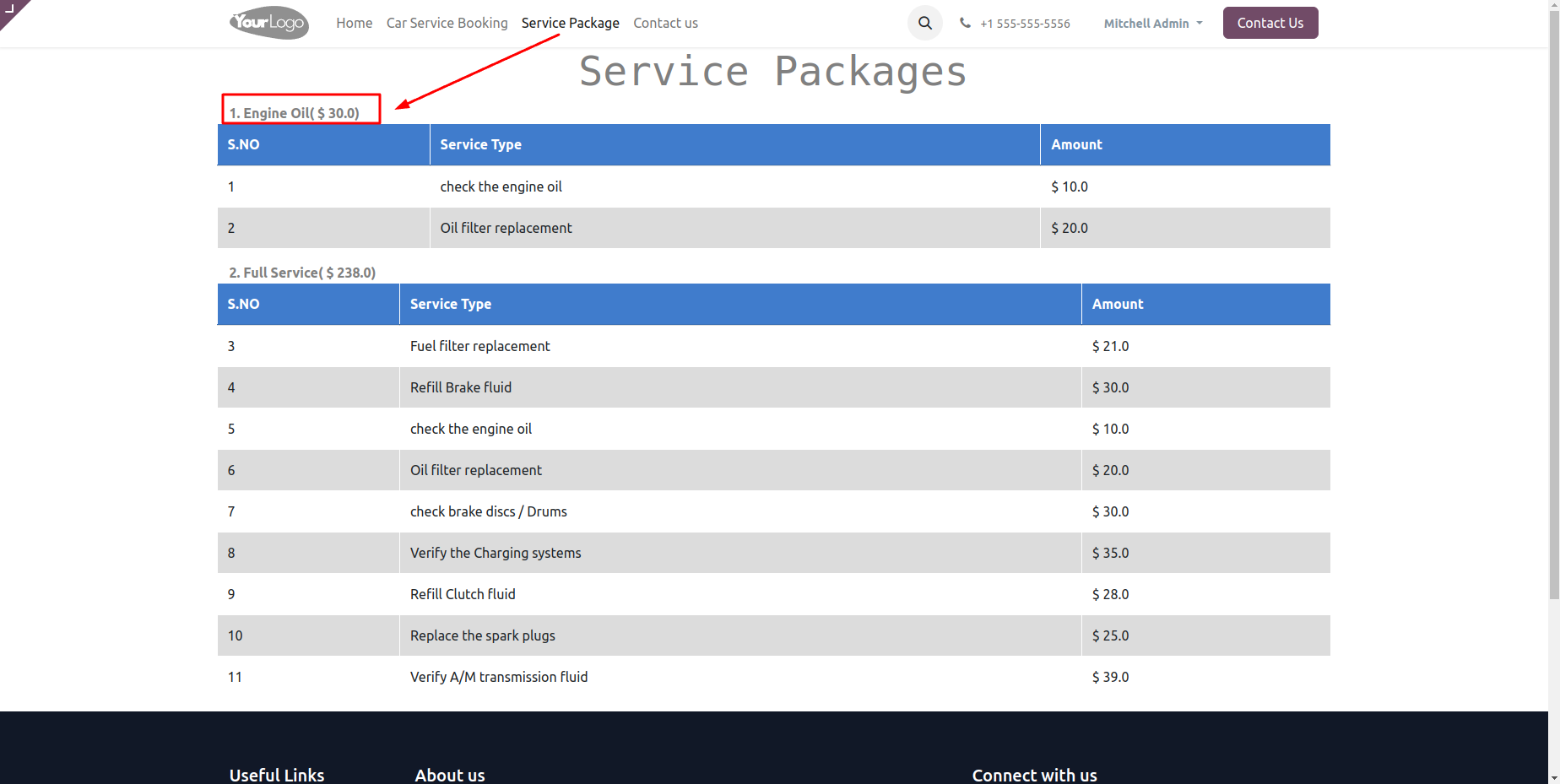 Service Packages View.