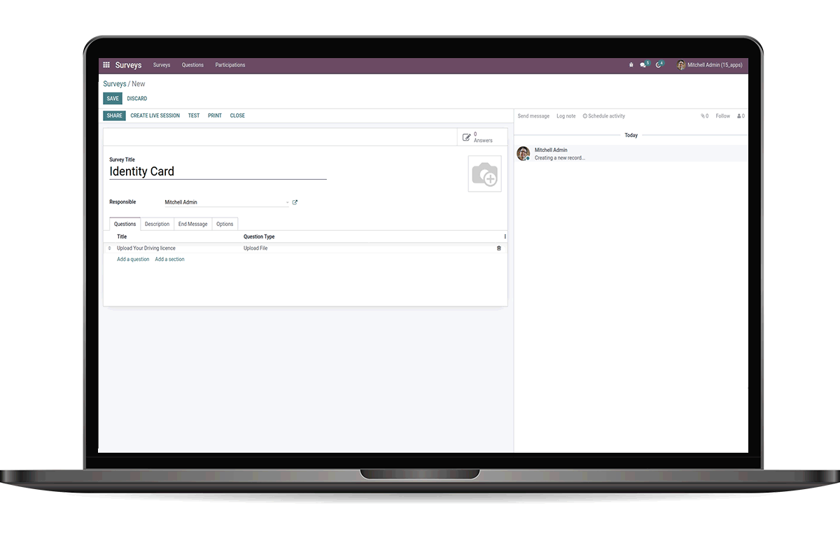 File Upload In Survey Odoo app adds single or multiple file upload options to surveys. Users can add questions to the survey that allow participants to upload files as answers. Participants can either choose to upload a single file or add multiple files in response to the survey question. Participants can view their uploaded attachments by clicking the "review your answers" button in the survey.