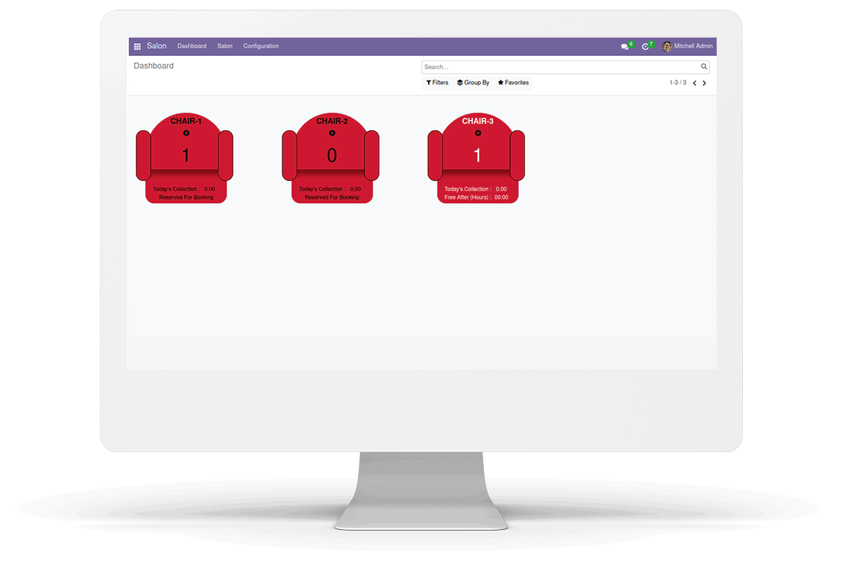 You can see all the salon orders in different stages in the kanban view. The salon order for the chairs, which are not available for online booking, can be created from here. The stages of the salon orders can be changed by dragging and dropping the salon orders in different stages. The list view for the salon orders is also there .