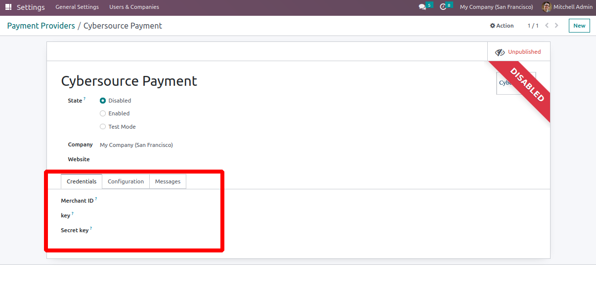 Give the appropriate credentials for the payment provider