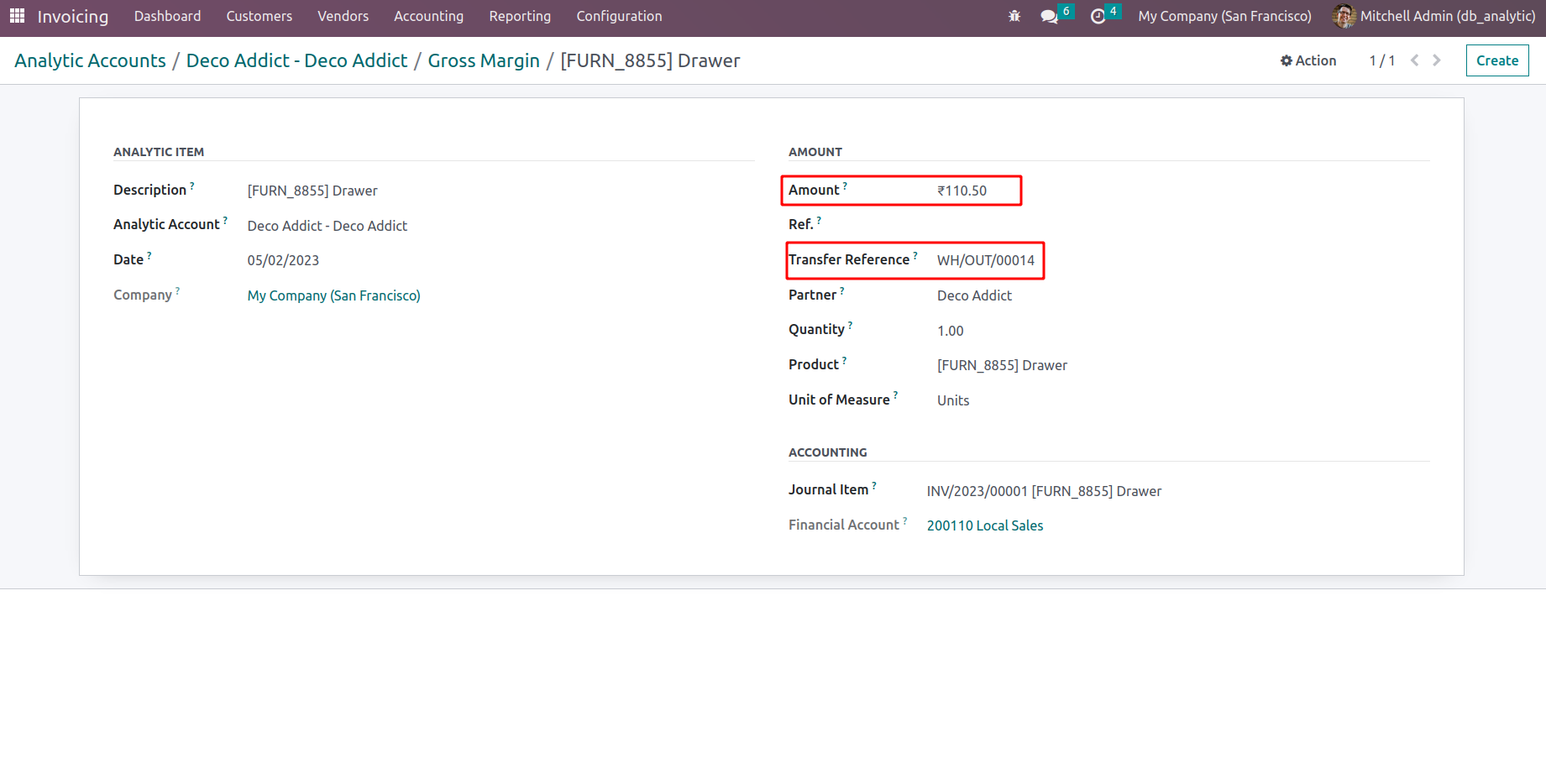 From the Gross Margin tab of related products we can see the corresponding amount with related transfer
