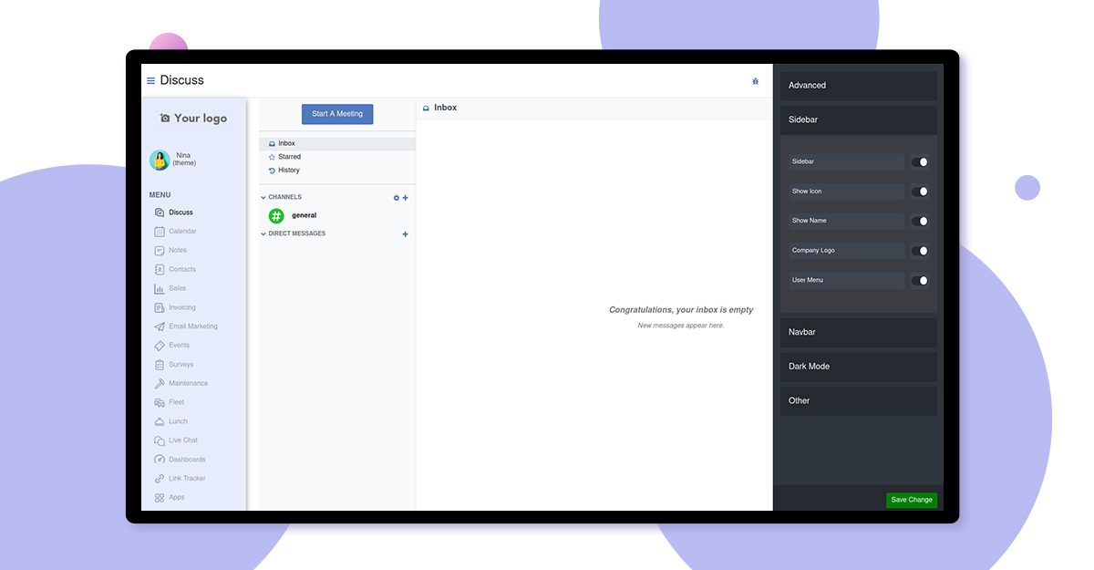 The Backend Theme Infinito Is A Dynamic And Ultimate Theme For Your Odoo V16. This Theme Will Give You A New Experience With Odoo. Main Highlight Of The Theme Is You Can Dynamically Change The Colors, Views, Buttons, Different Types Sidebar...Etc. Moreover It Act As A Studio Based Theme. It Also Provides Dark Mode With 3 Configuration, Recent Apps, Menu Bookmark And It Supports RTL. It Is A Perfect Choice For Your Odoo Backend And An Attractive Theme For Your Odoo 16. It Will Give You A Clean Layout With A New Color Combination. It Has A Sidebar With New App Icons, Company Logo And User Menu. This Will Change Your Old Kanban, List And Form Views To A Fully Modified View And Infinto Provides You A Full Screen App Bar With User Image And Greetings.