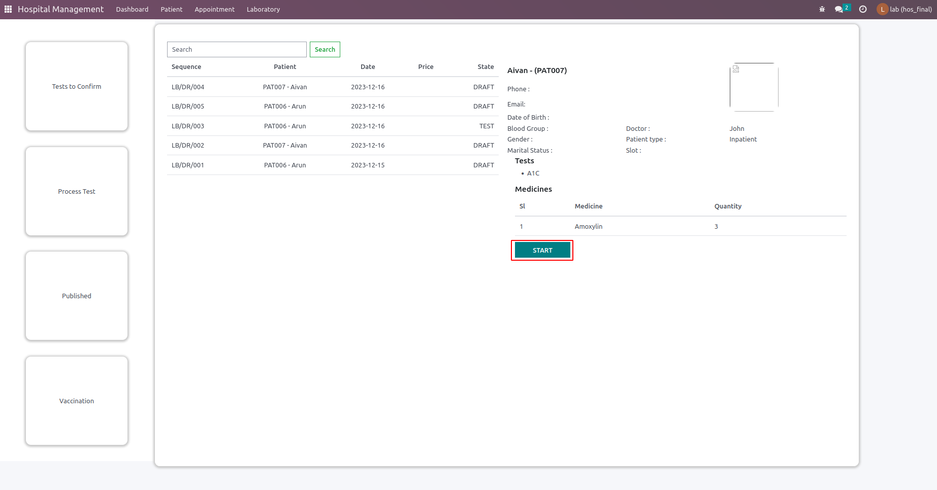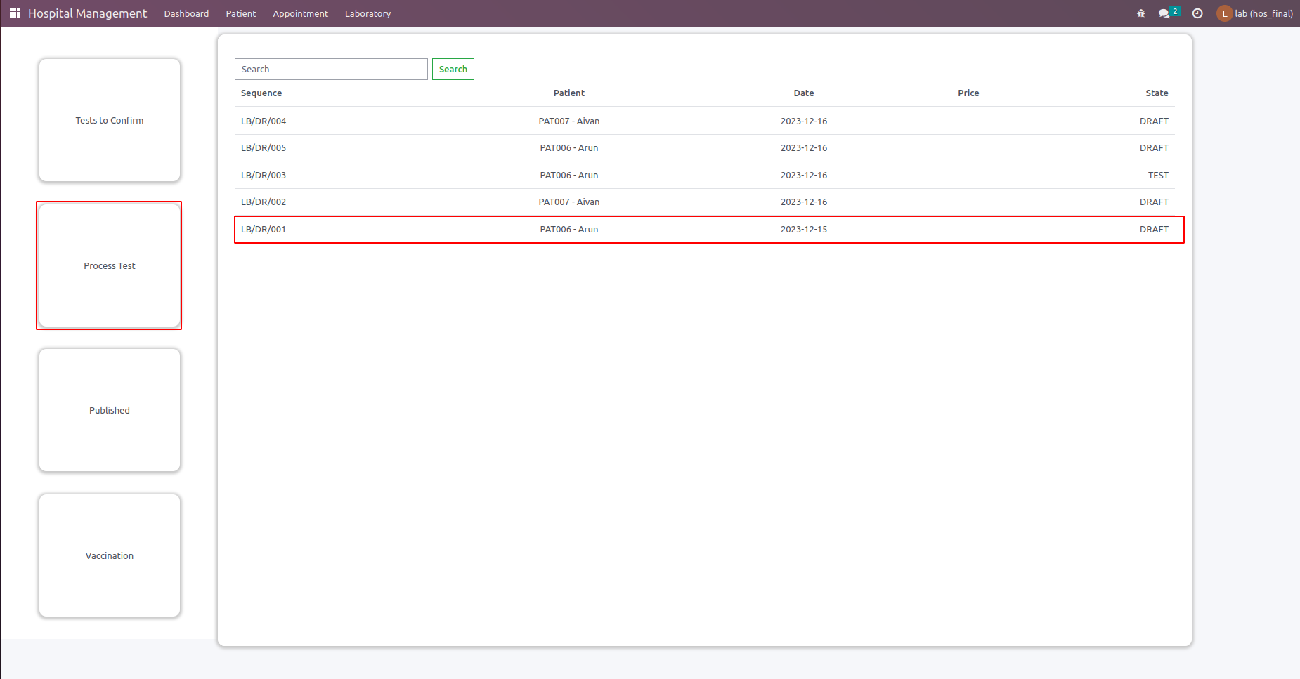 By navigating to Laboratory -> Lab Test, a new lab test can be added.