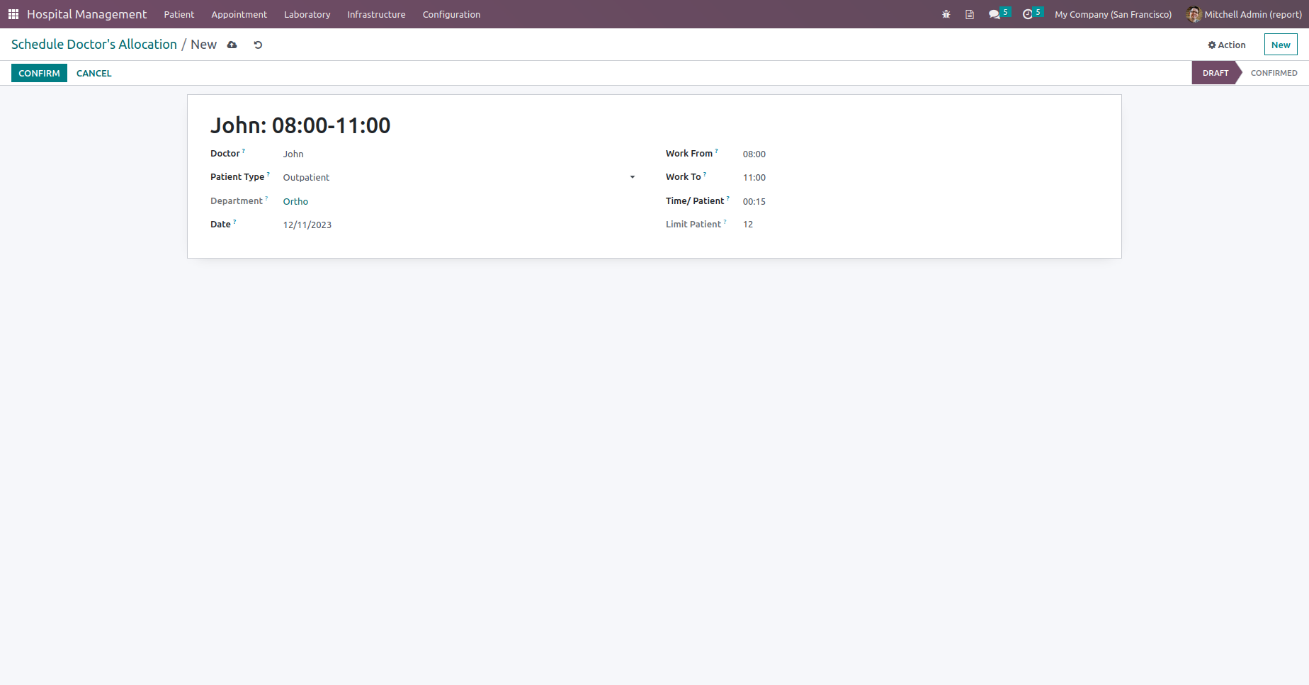 By navigating to Appointment -> Allocation, a new allocation can be added and click CONFIRM.