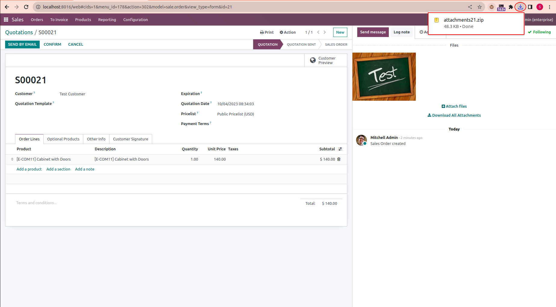 When you view the attachments a download button will appear under the add files button.Click the download all attachments button to download all the attachments in a single file.