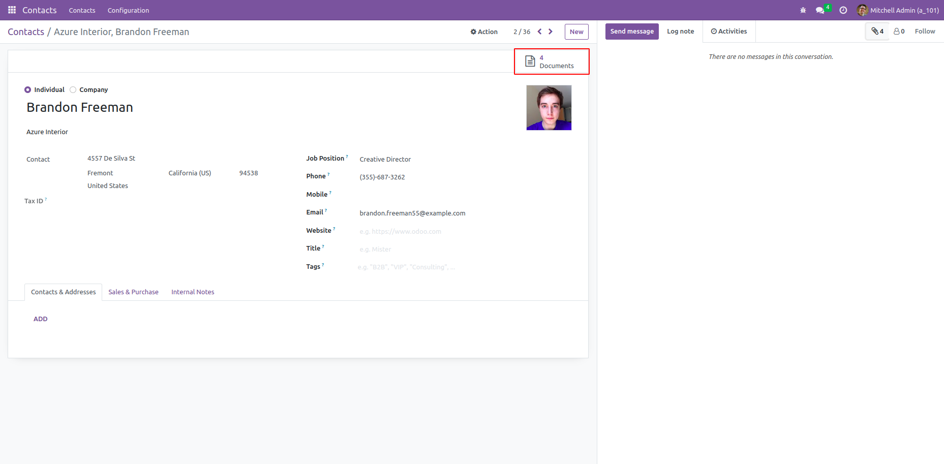 We Can See A Smart Button Documents Click On This To See The Contacts Documents.