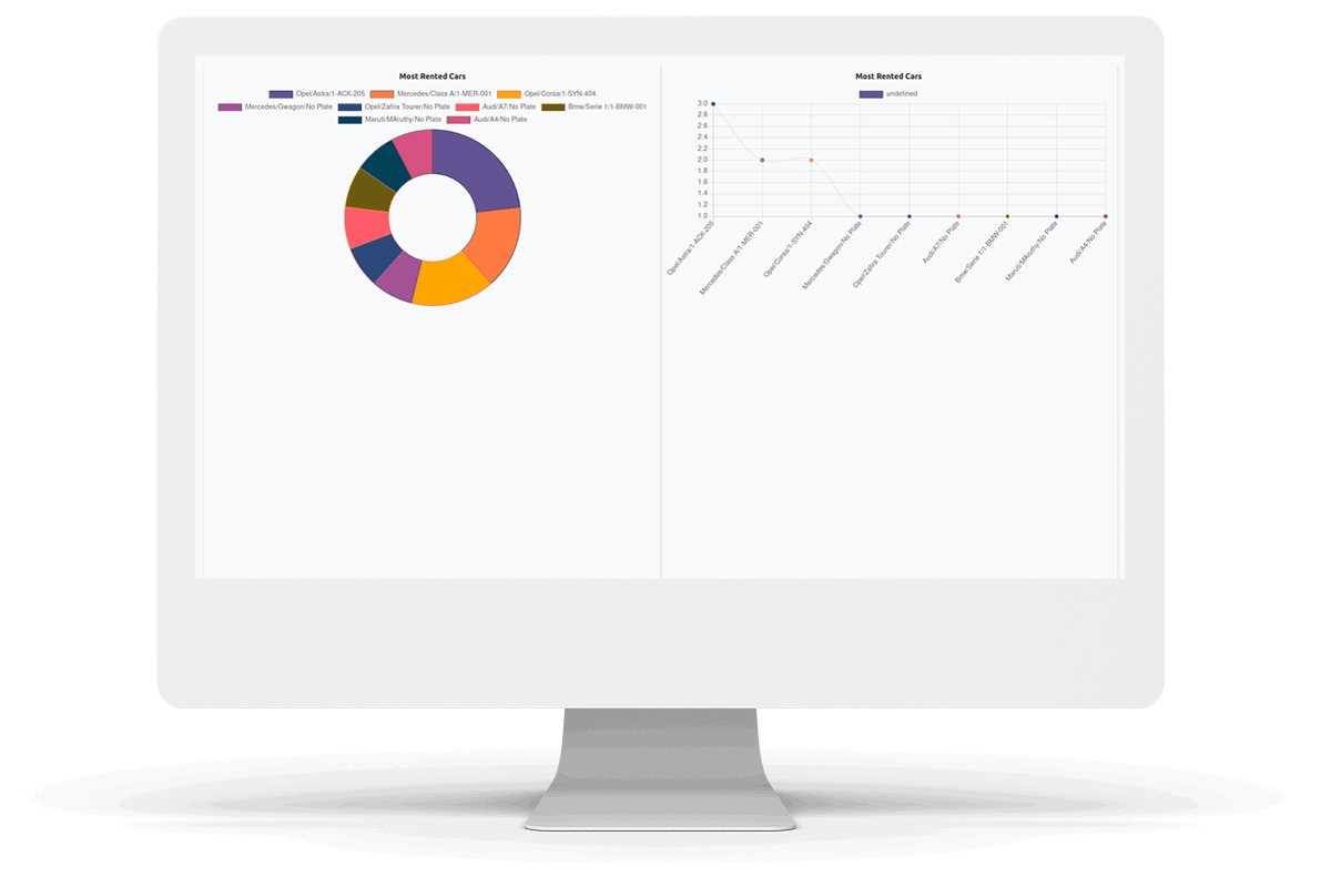 An elaborated dashboard view with Top Customers, Most Rented Cars and Available Vehicles.