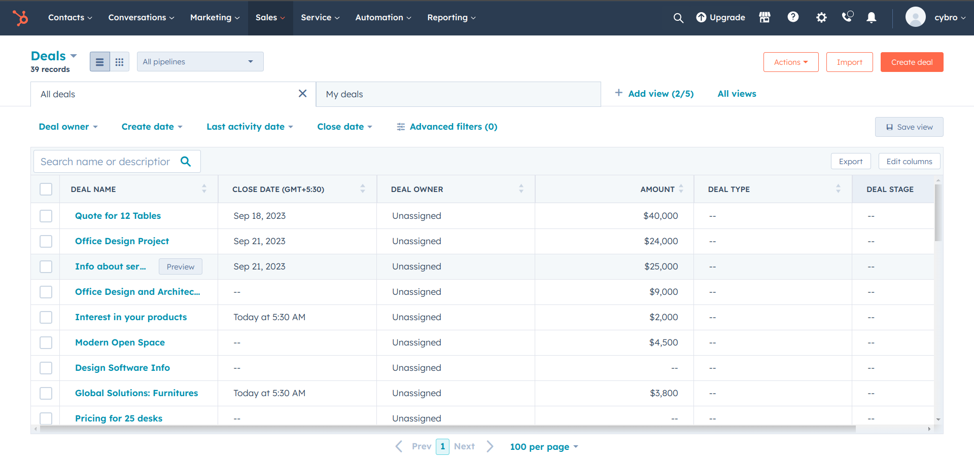 Import, Export and Update Deals.