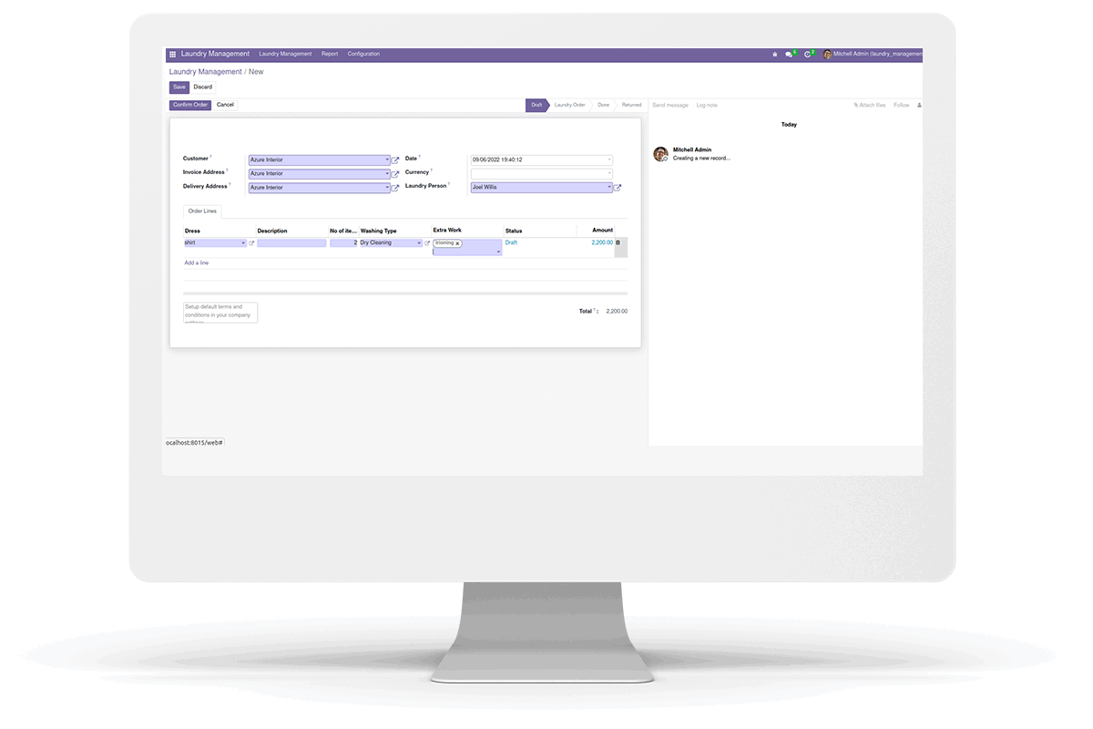 Laundry Order via clicking the 'Create' button. There you can specify the customer,