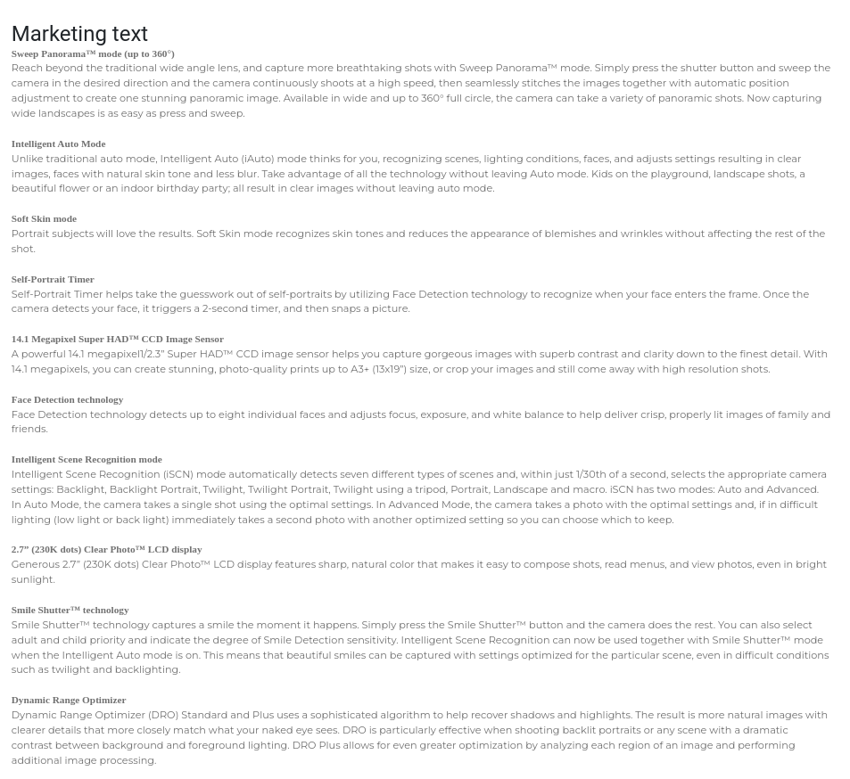 images, technical specifications, and marketing content,