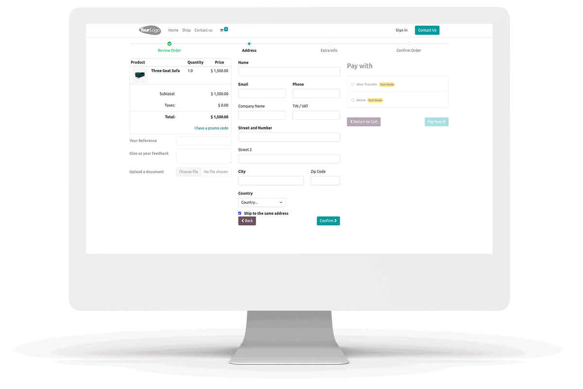 Apply your promo-codes. Enter your promo code to apply special discounts.