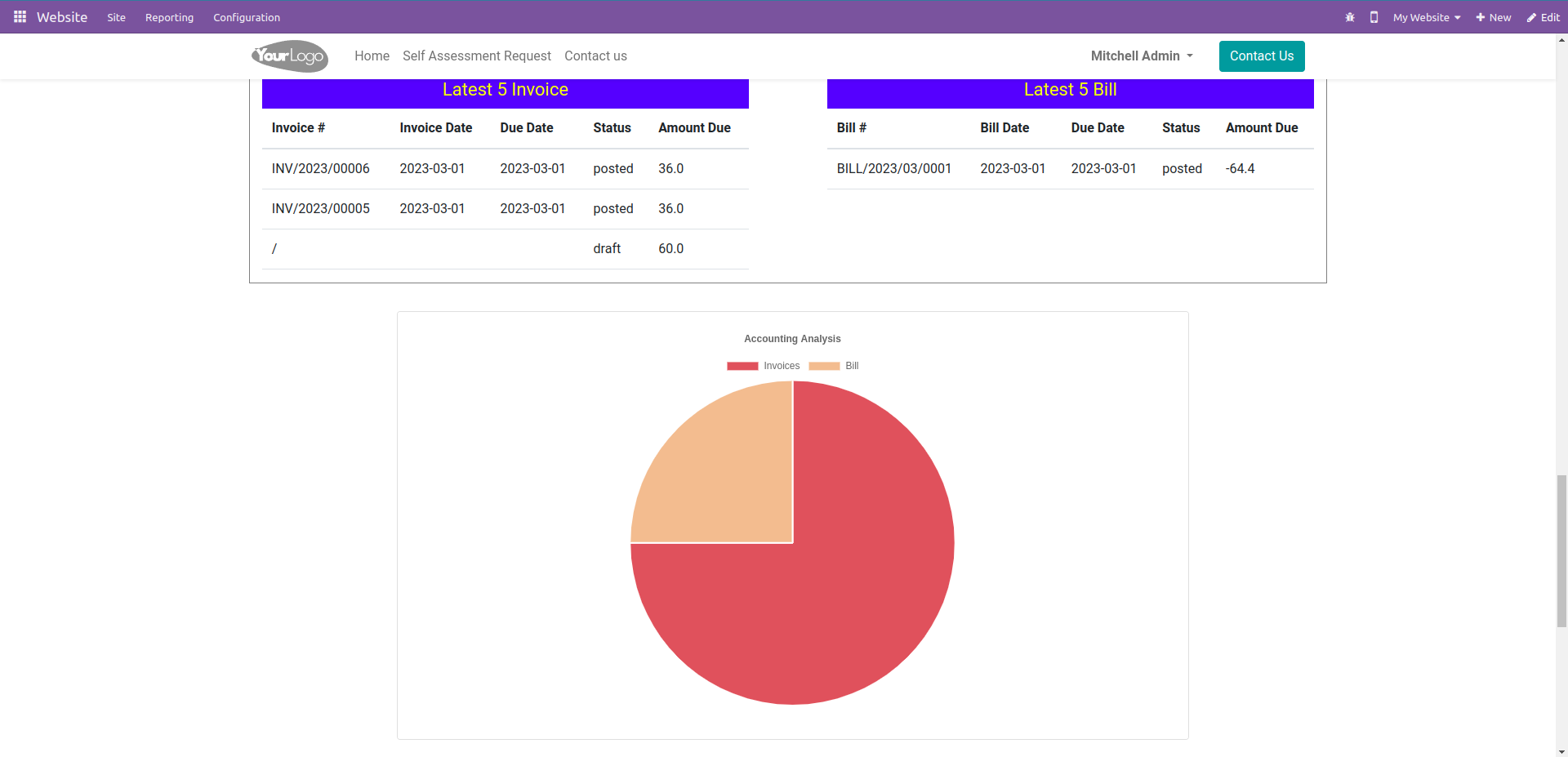 Also there are analysis pie chart for sales, purchase and accounting