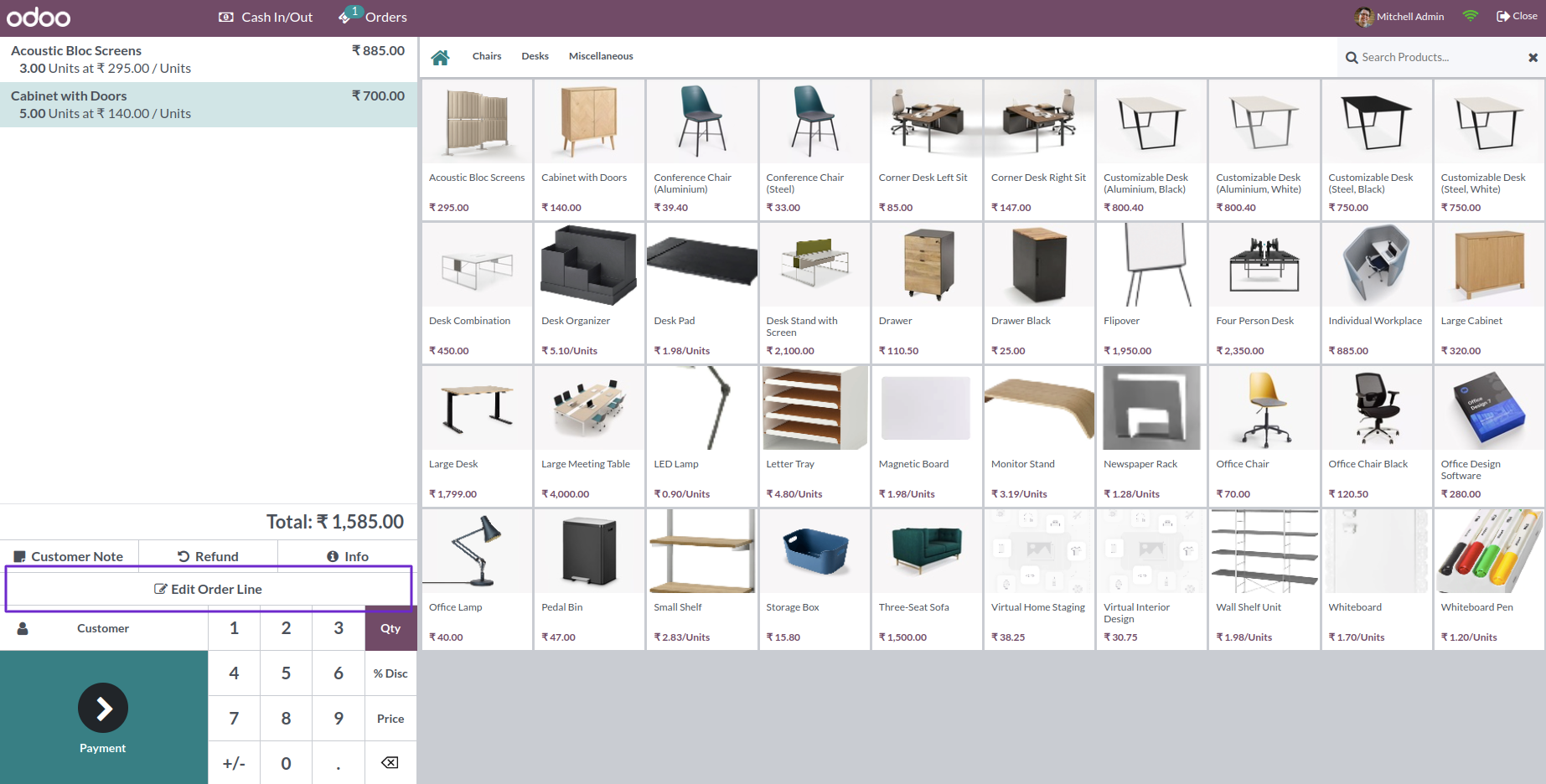 Detailed POS Order Line Mass Edit View.