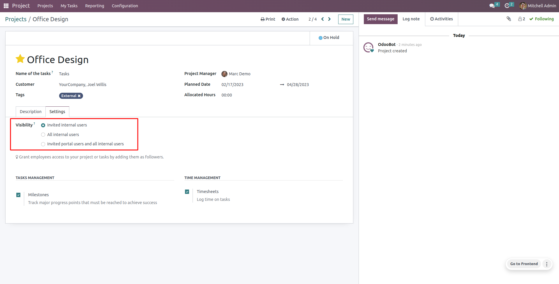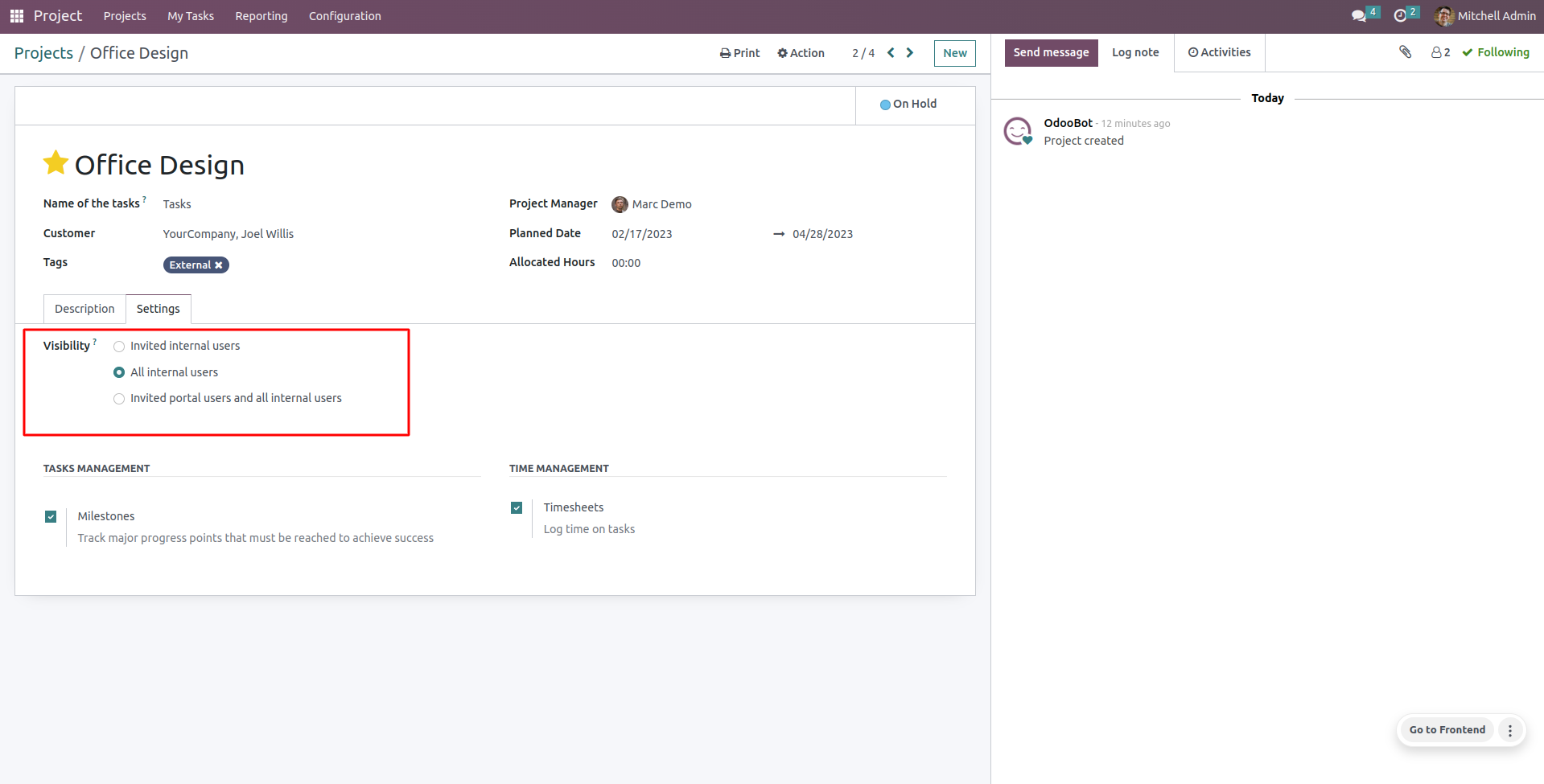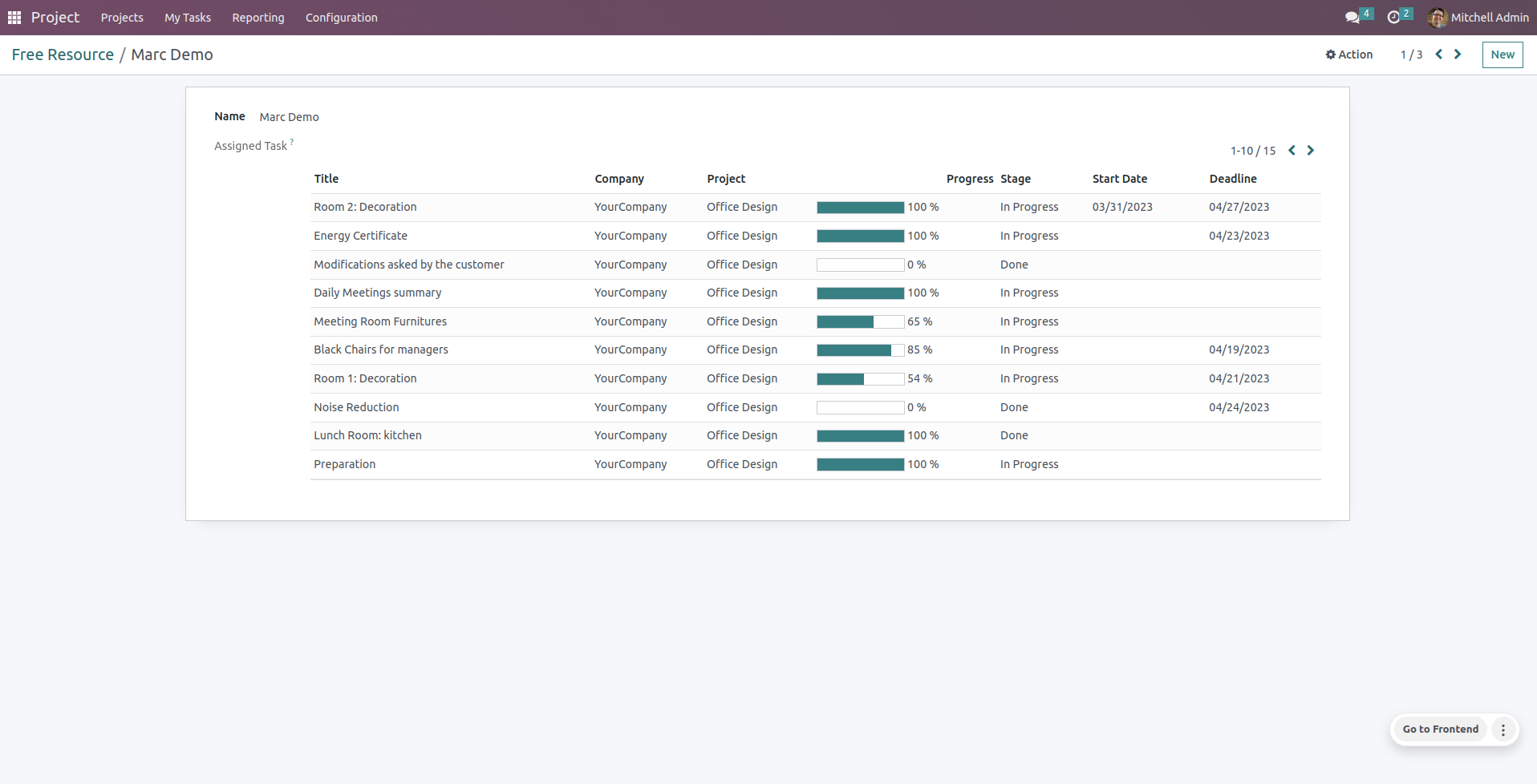 on user's projects on given dates.