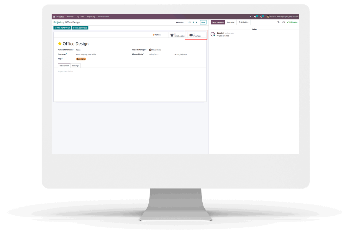 Purchase tab in project form shows the count of purchase agreement of a corresponding project.