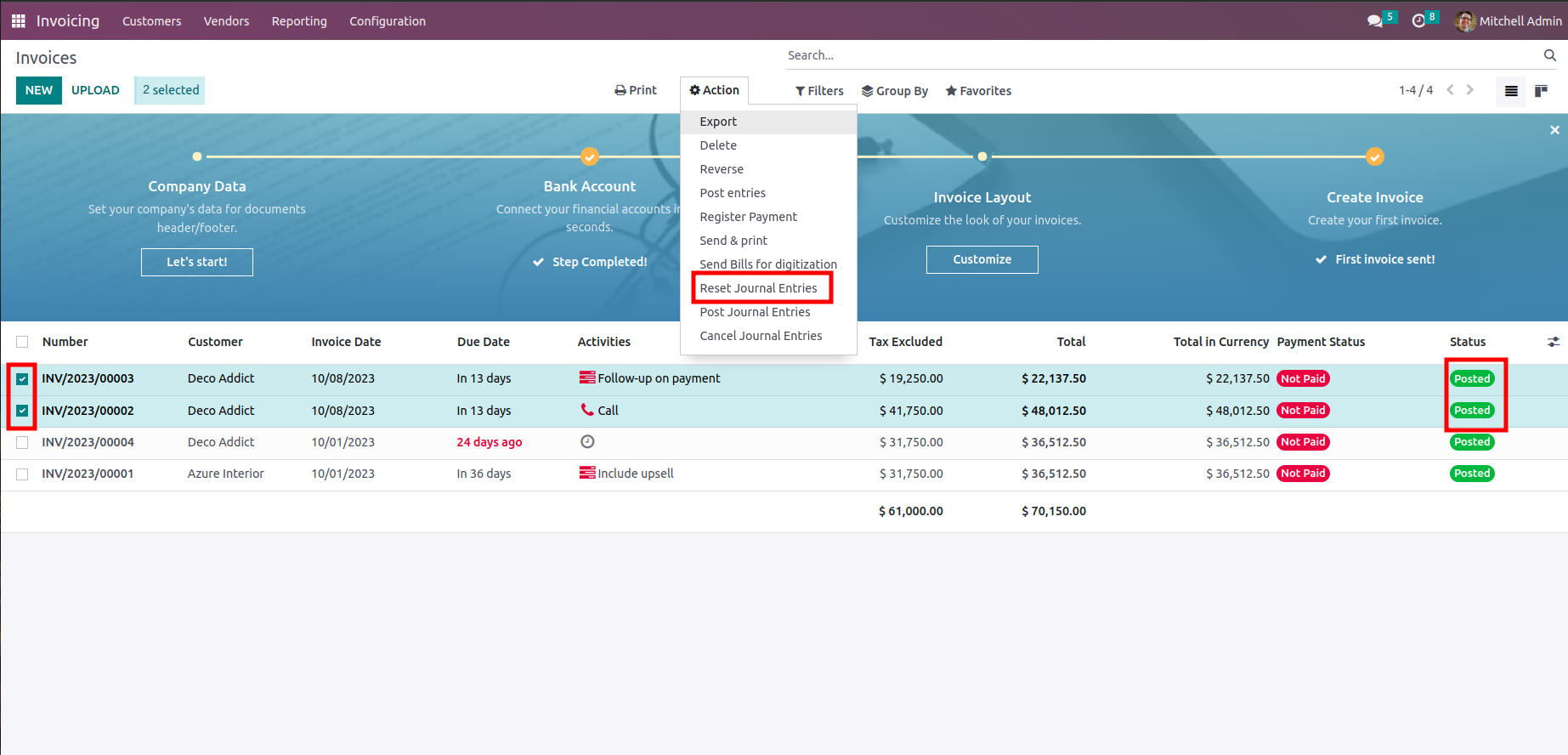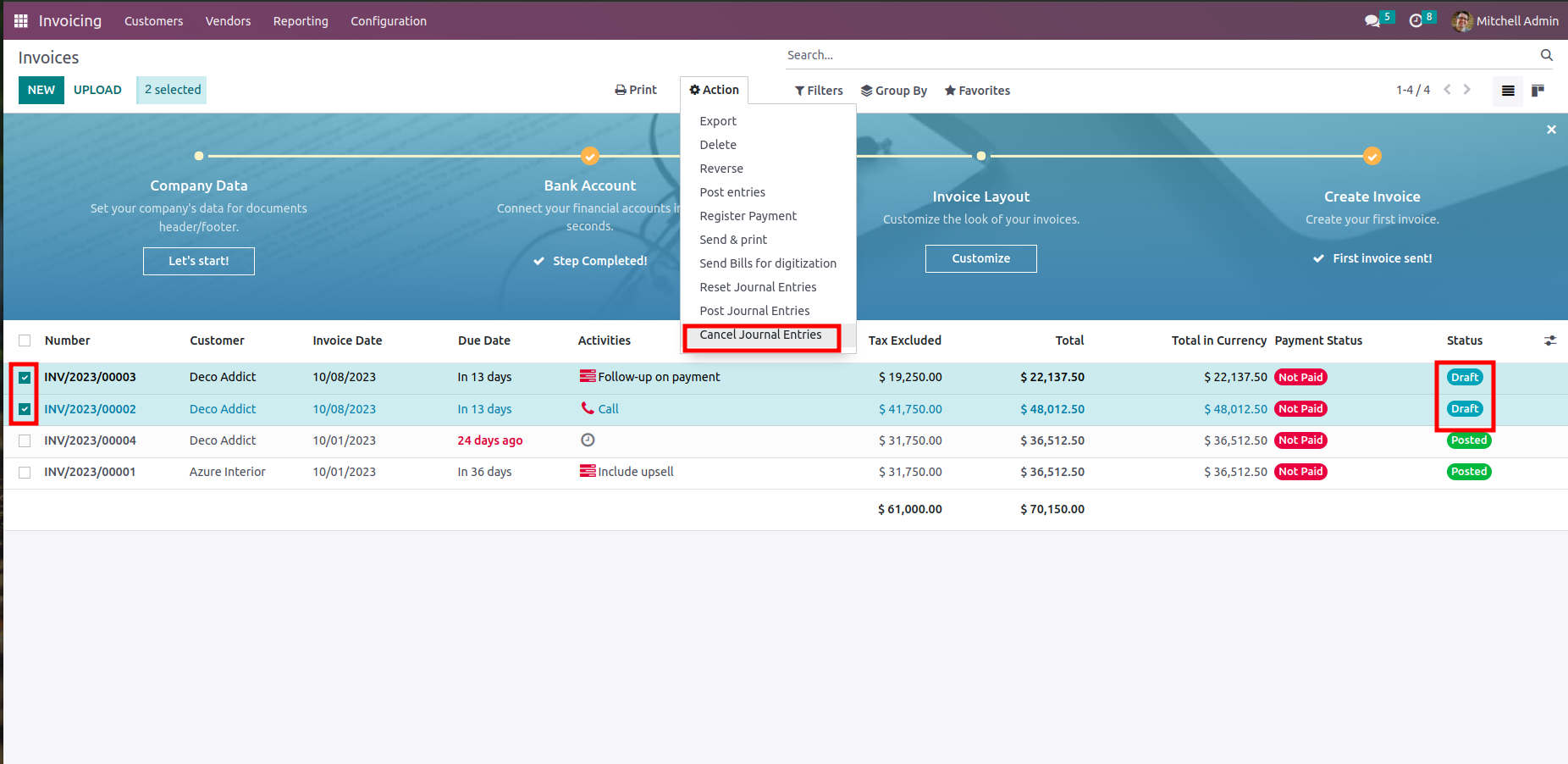 Multiple Journal Entries can be set to Draft, Cancelled and Reposted in Accounting.