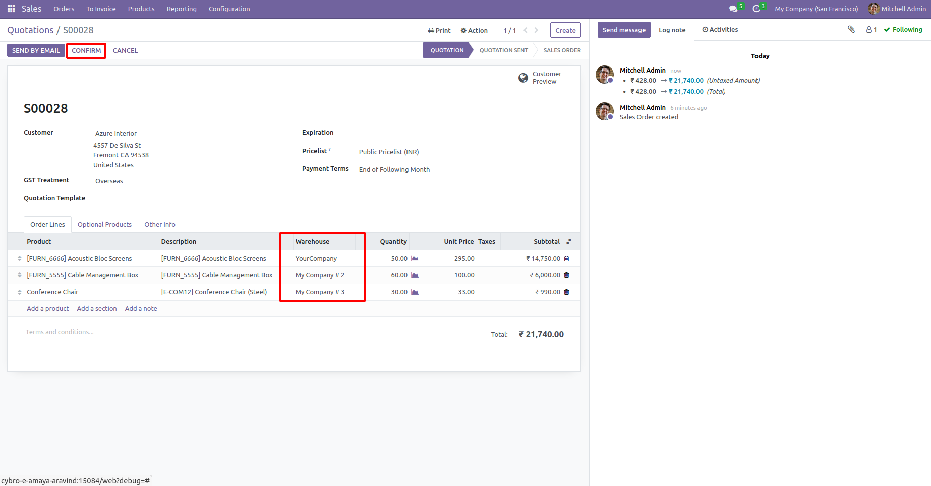 This module will help you to set warehouses per sale order lines and the picking will be created for the selected warehouses separately.
