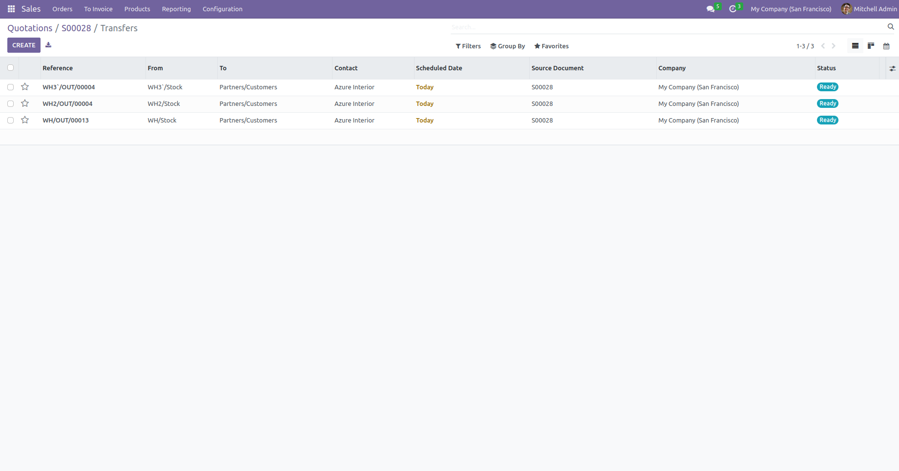 If you selected 3 different warehouses for products, 3 delivery will be created.