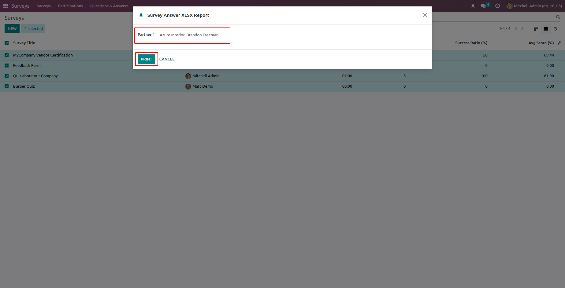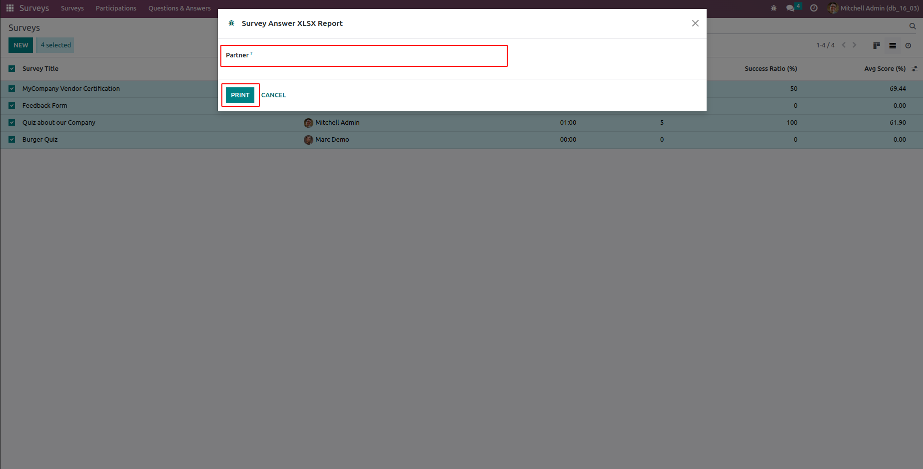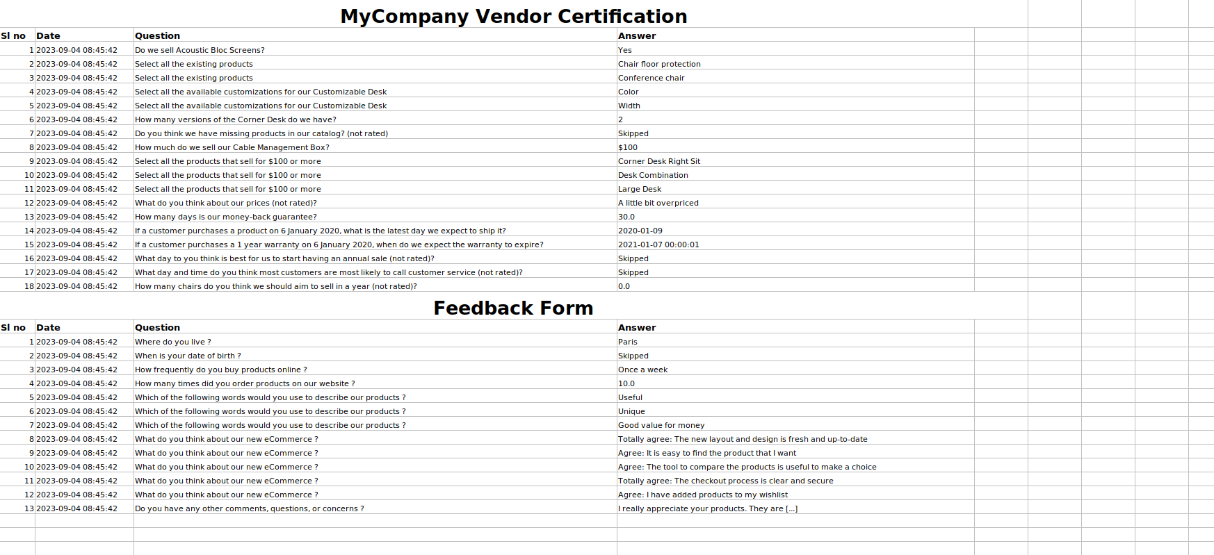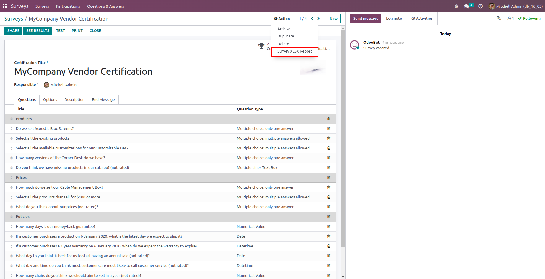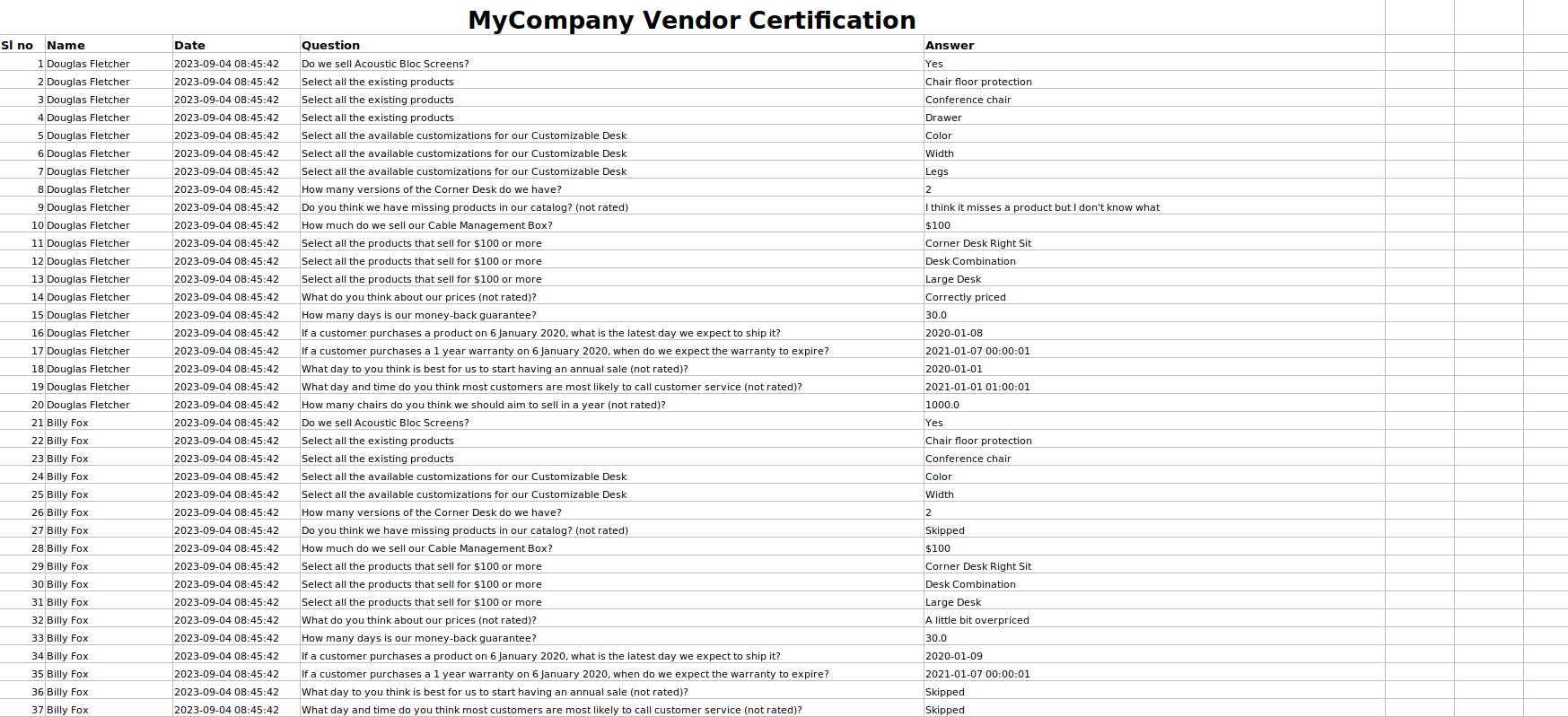 This Module helps to Export Survey Answers in XLSX Format. You can easily get the Questions and Answers of the Corresponding User