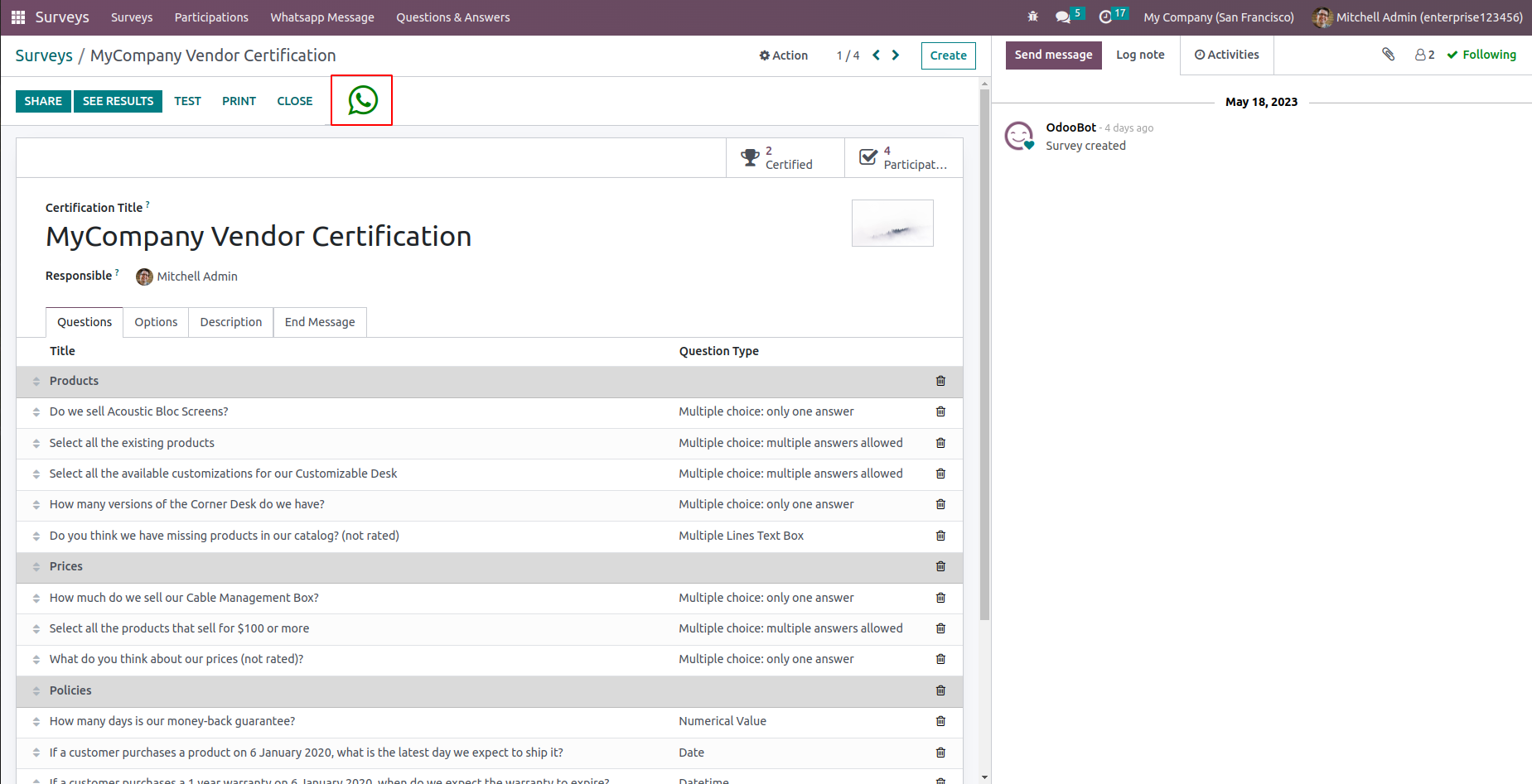 You can see all messages sent through WhatsApp in the WhatsApp menu.