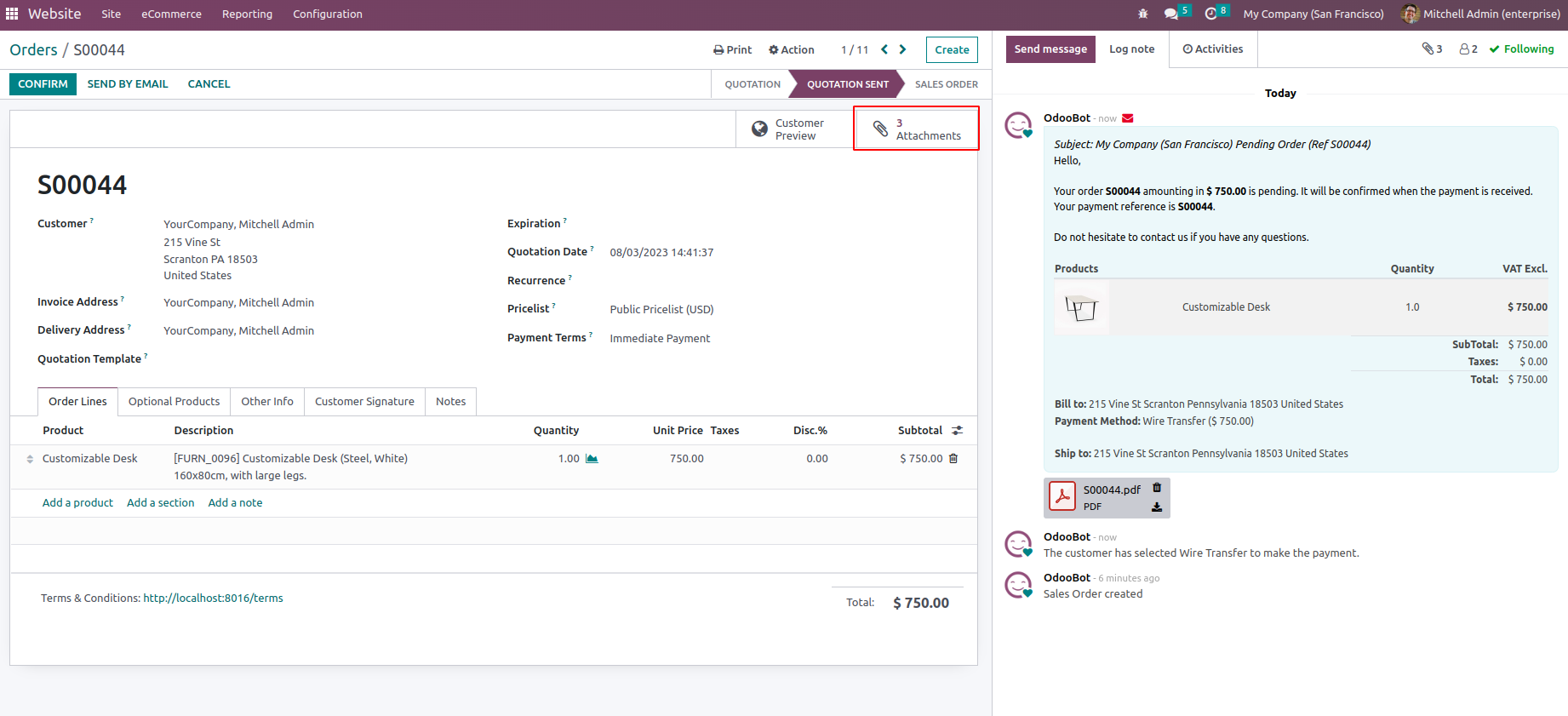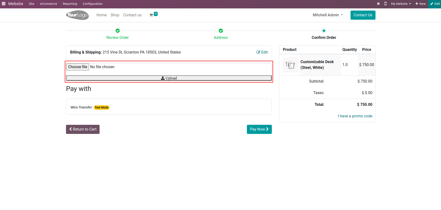 After the installation of this module, we can see a choose option for adding attachments in the payment page of website.