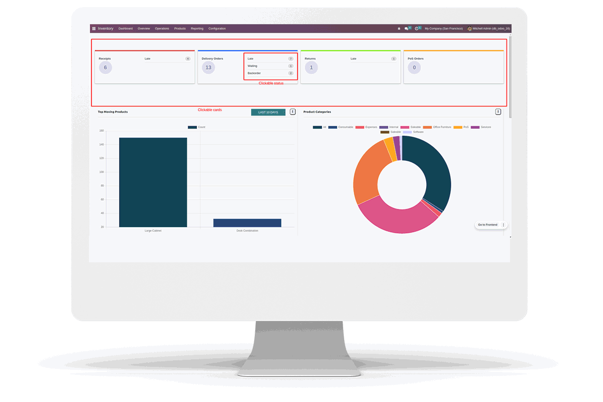 Inventory dashboard have different types of graphs that will give you complete analyse of the inventory module.