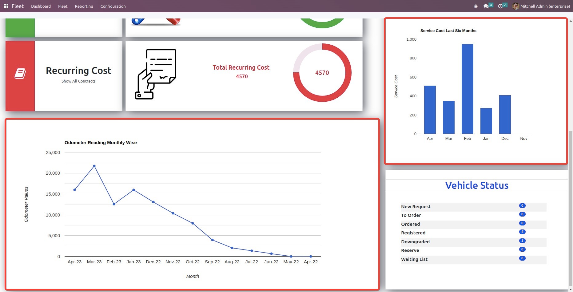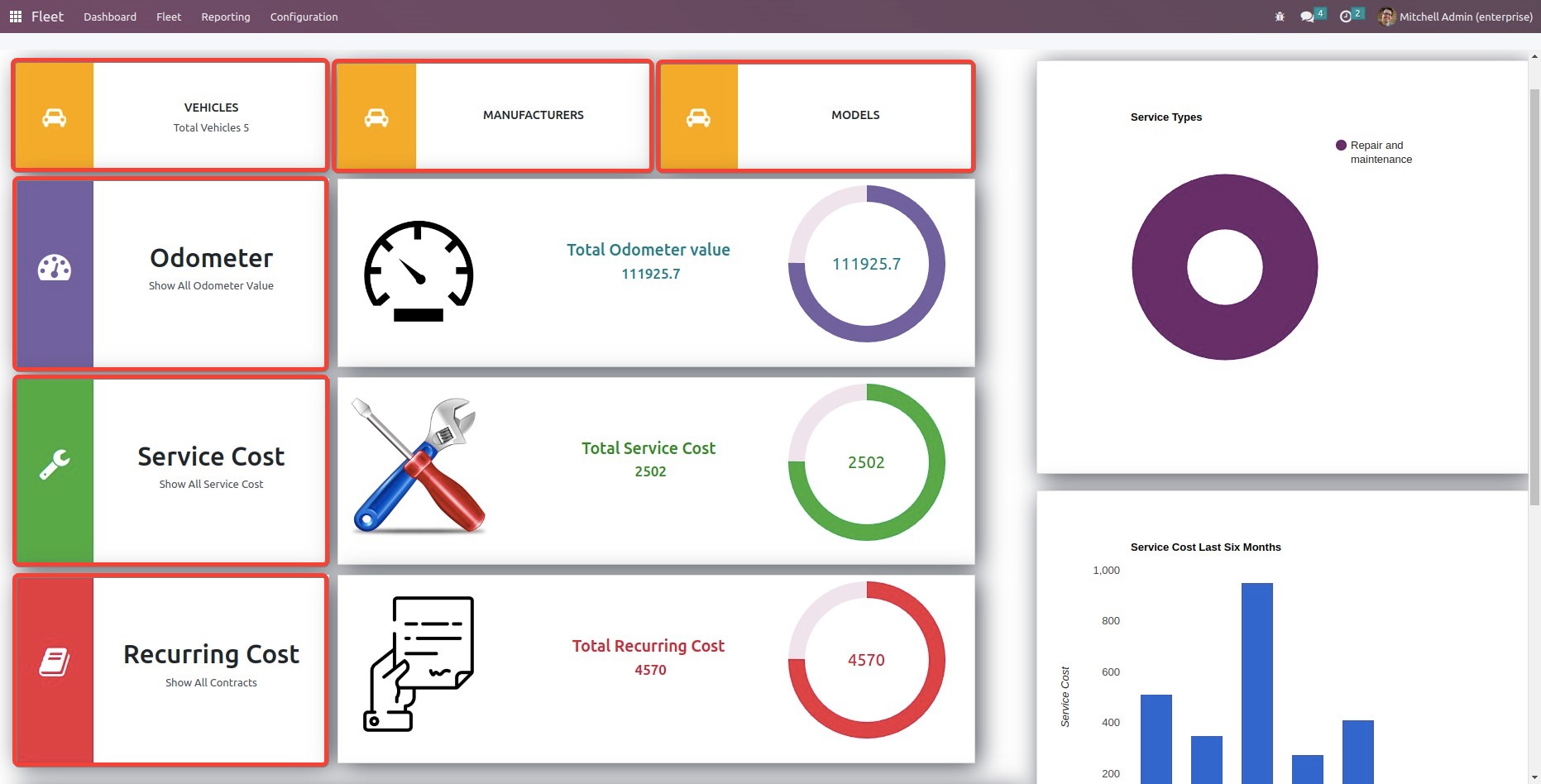 The Fleet Dashboard has different types of graphs that will give you a complete analysis of the Fleet Module.