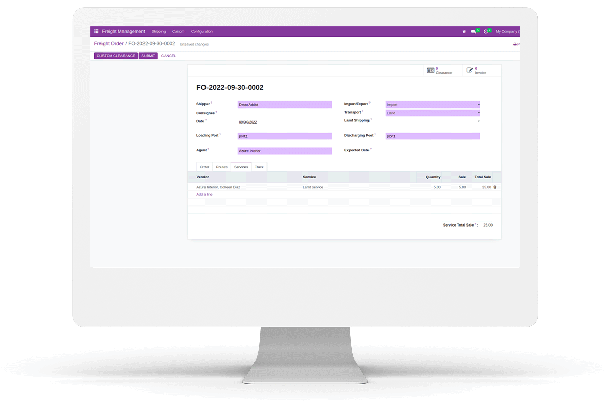 By clicking the custom clearance button we can create the custom clearance for the freight order. We can view the custom clearance in custom clearance menu under the custom. After Conforming the custom clearance, we can confirm our fright order.