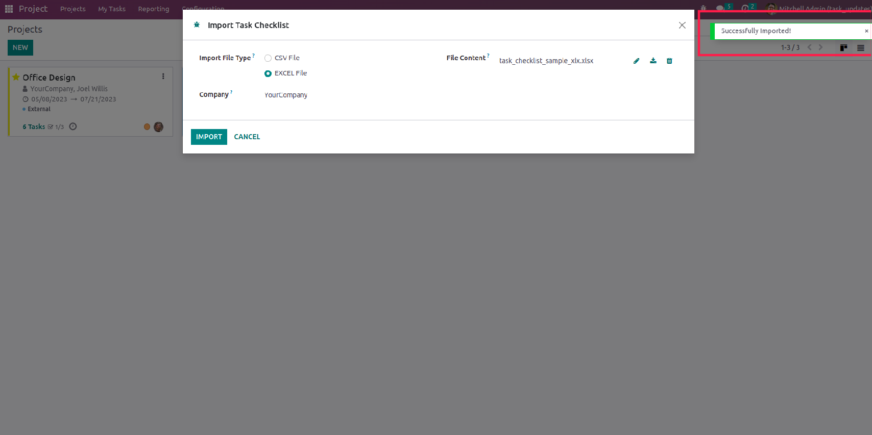 By Using This Module We Can Import Task Checklist From Both CSV and EXCEL Files Through The xlrd Package in Odoo