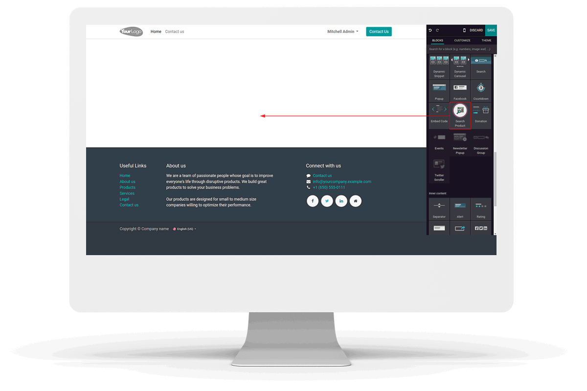 This module allows users to search for products either within a particular category or across all categories by utilizing the search bar on the website snippet. Subsequently, users can be redirected to view the details of the chosen product.