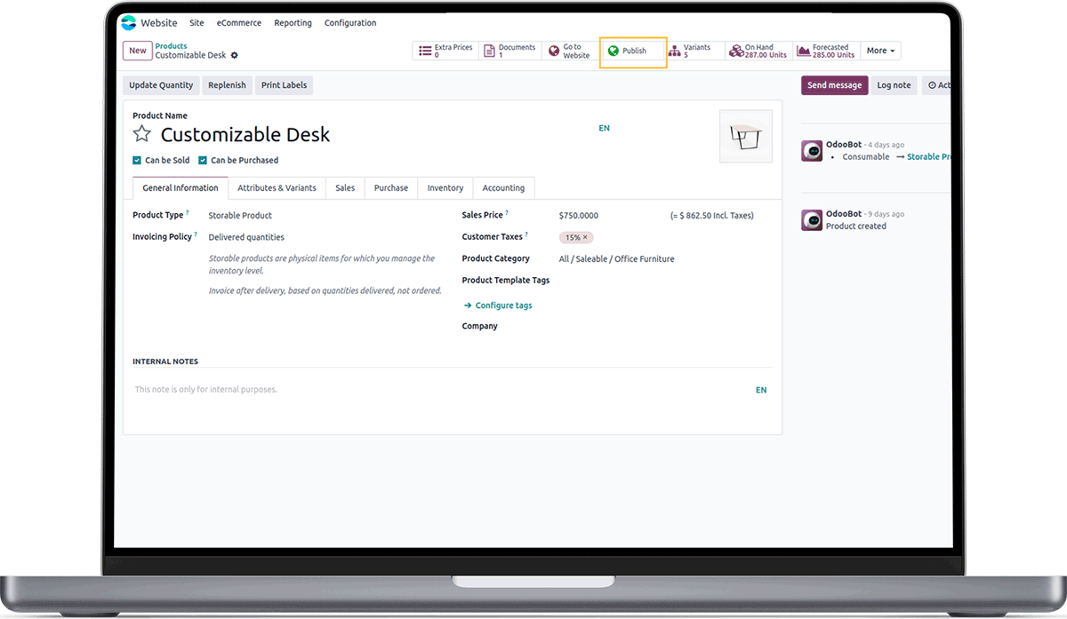 This Module Helps to Publish/Unpublish Product from Website Shop Without Redirecting to Website.