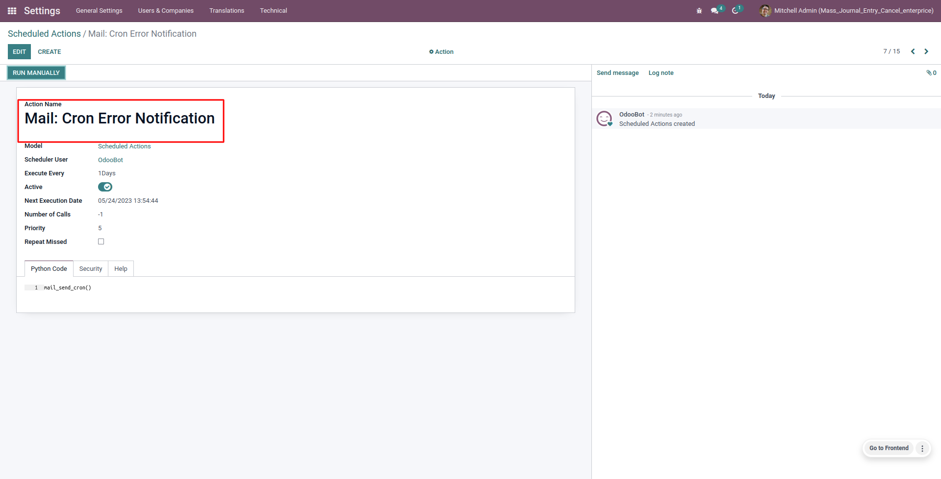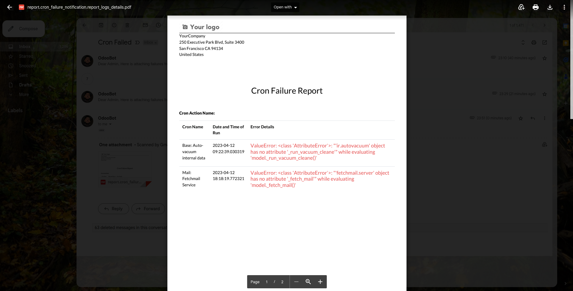 The Mail Contains Details of Cron Failure History with a Pdf Report.