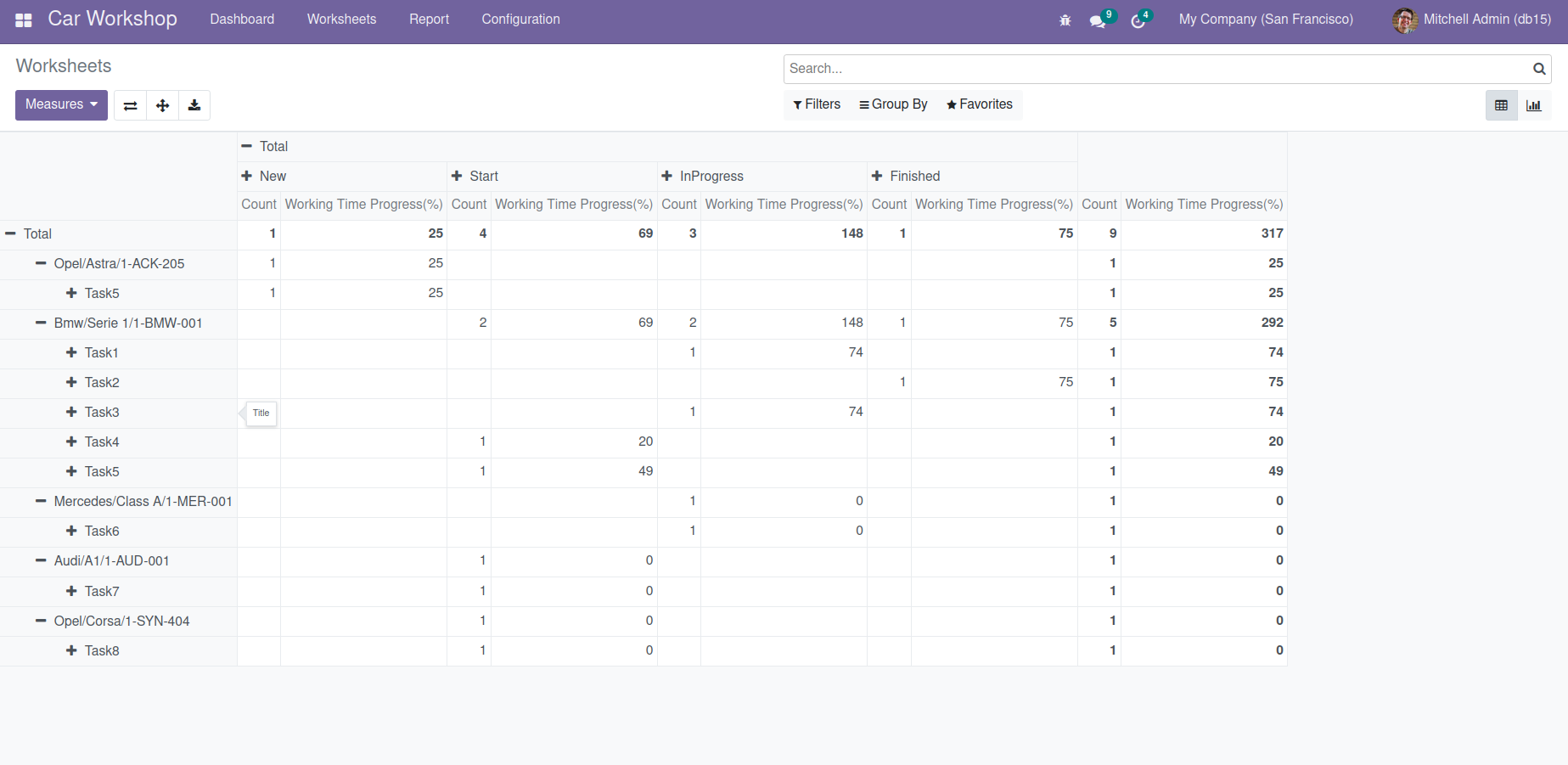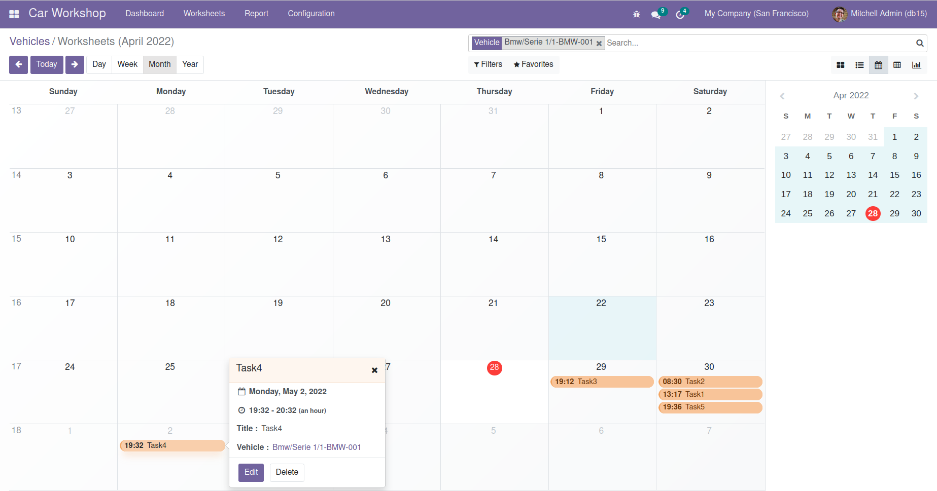 Goto Car Workshop >Worksheet >Timesheet