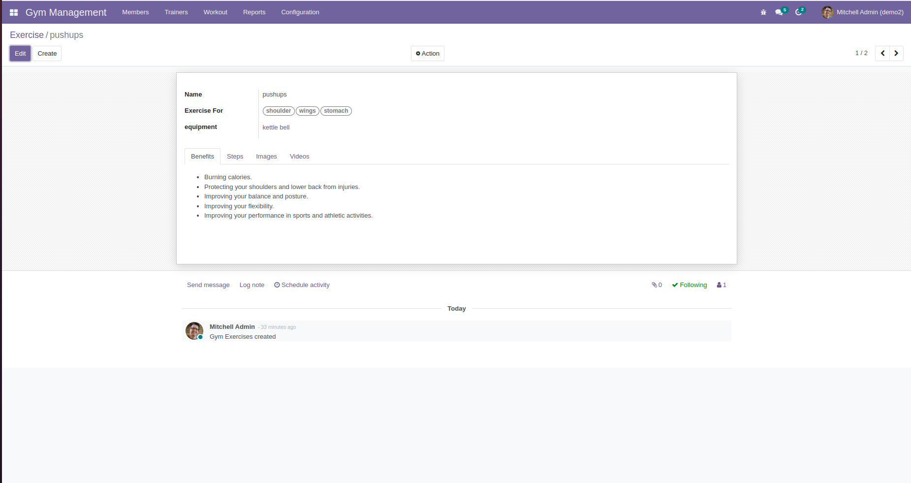 - Create Exercise with thier attributes like benefits,steps,images etc