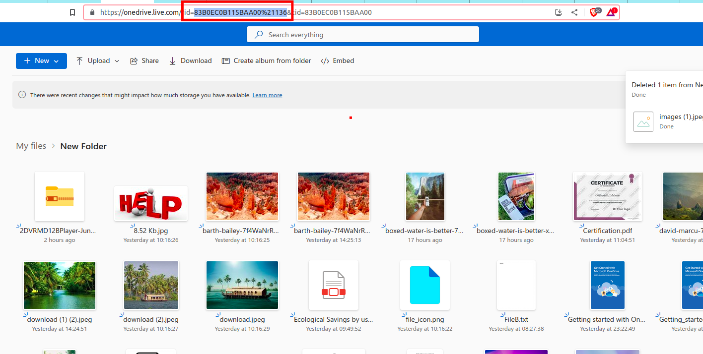 Displays all files on Onedrive