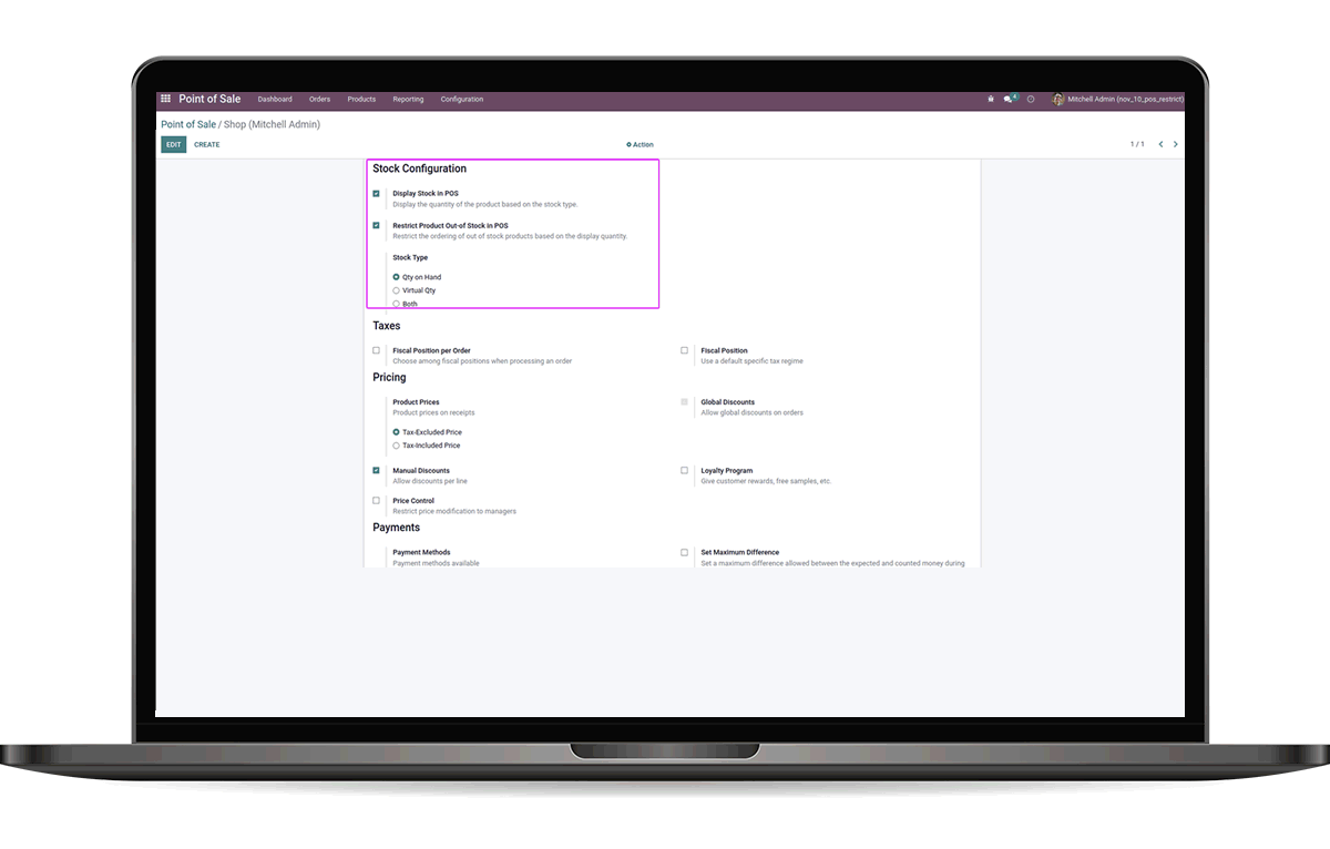 Restrict Out of Stock Product from PoS session and Display the Stock.