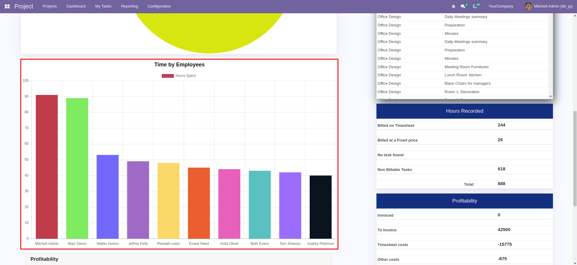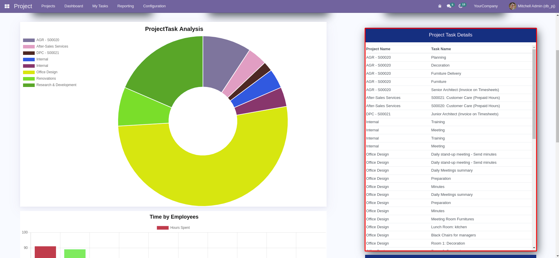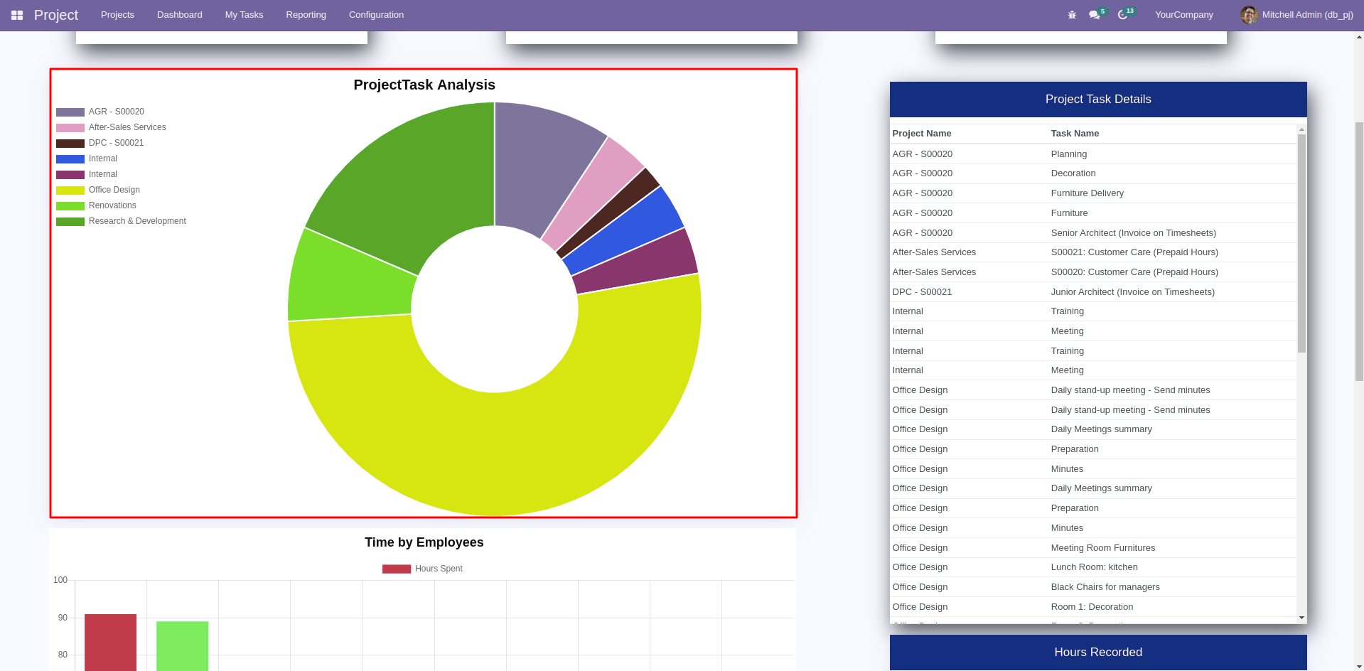 This module helps you to see the Overview of Project, here You can see the task, Employees, Timesheet, etc